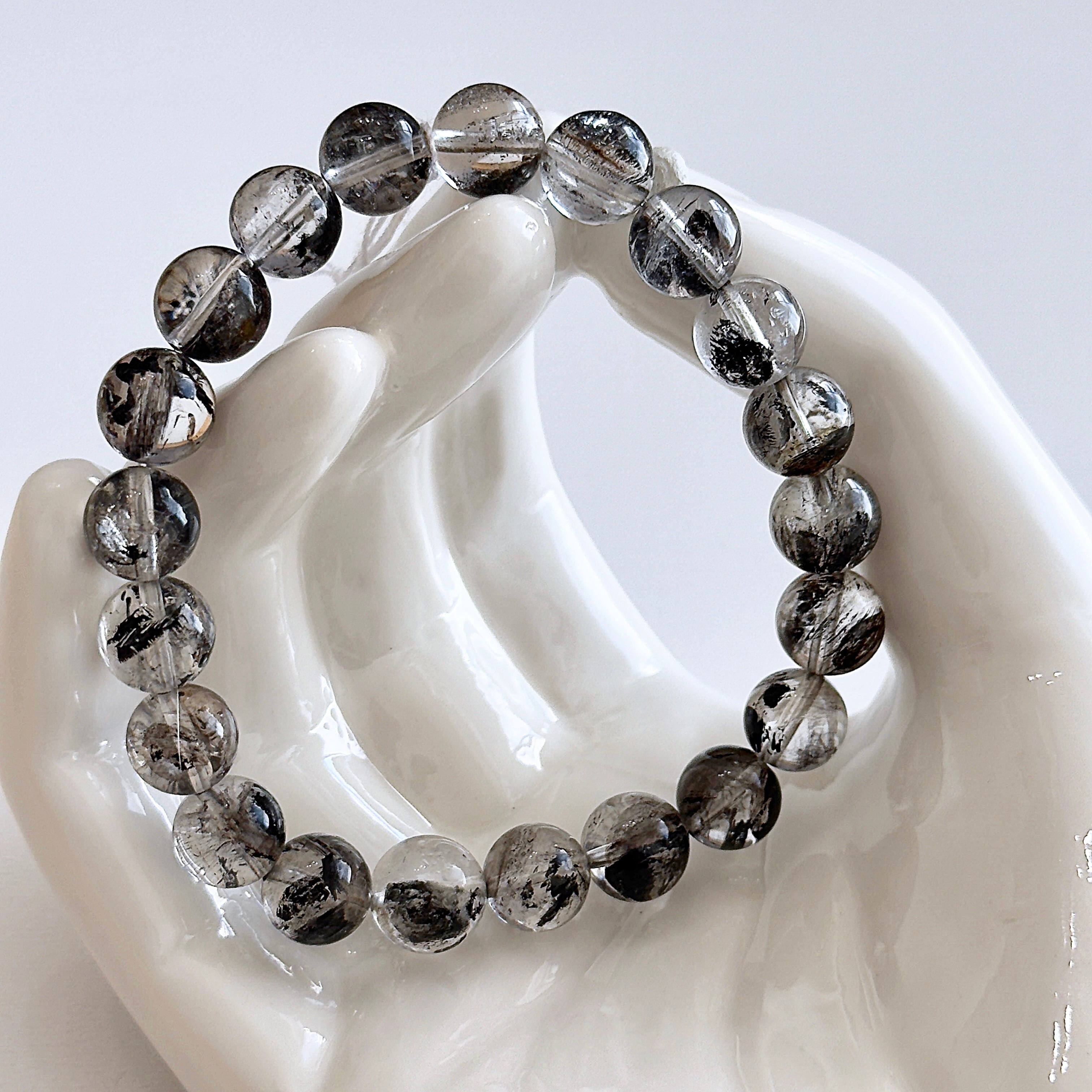 透明感の強い水晶に、黒いグラファイトが入ってます。