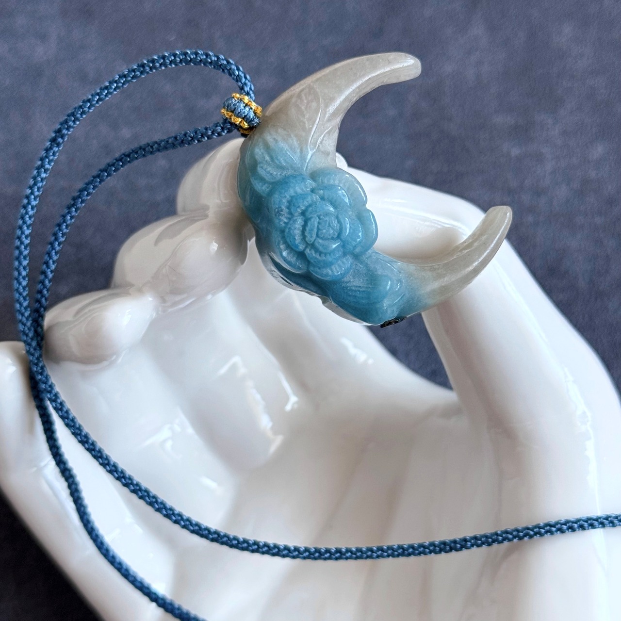 【愛と霊性の調和】トロレアイト 月と青薔薇の彫刻 天然石ネックレス