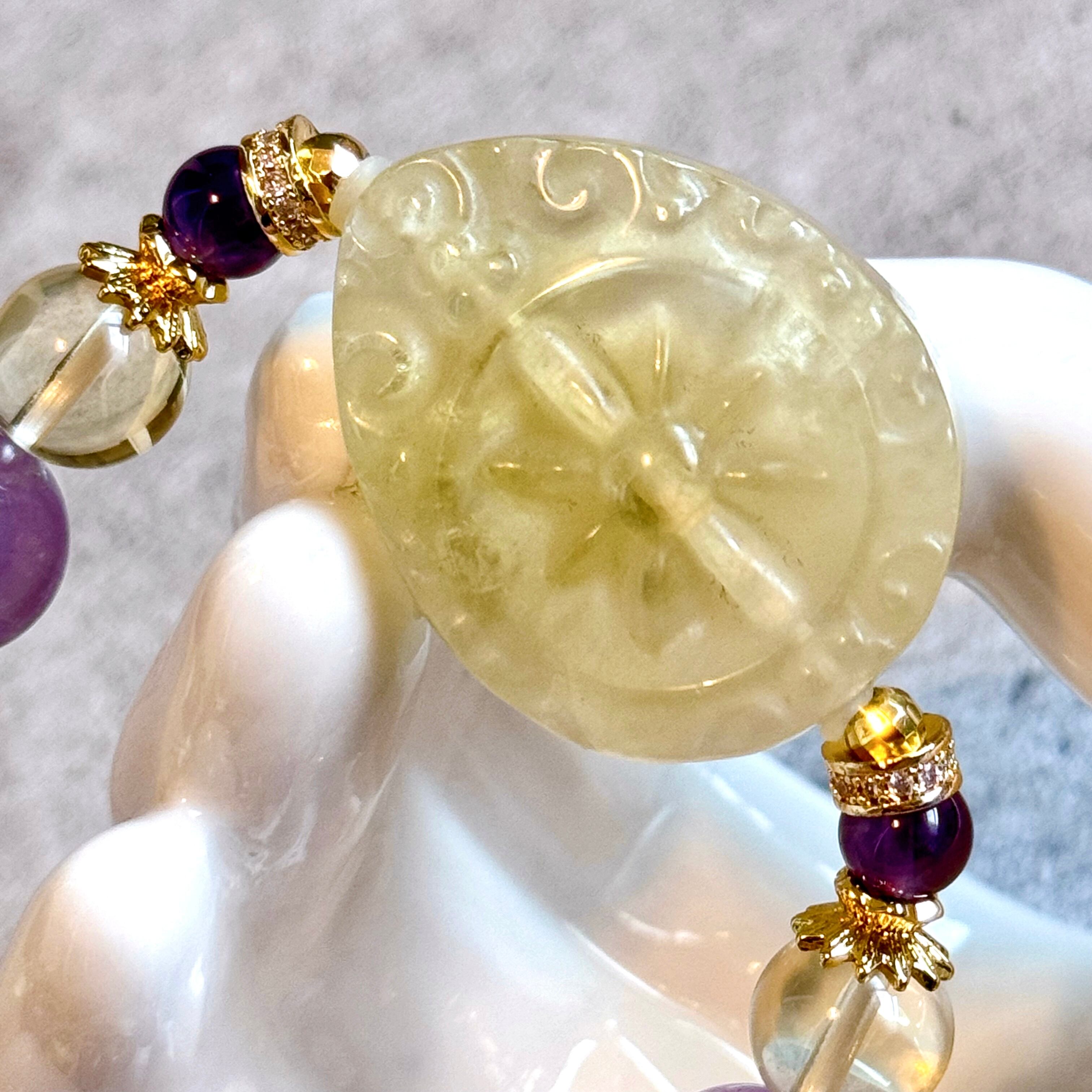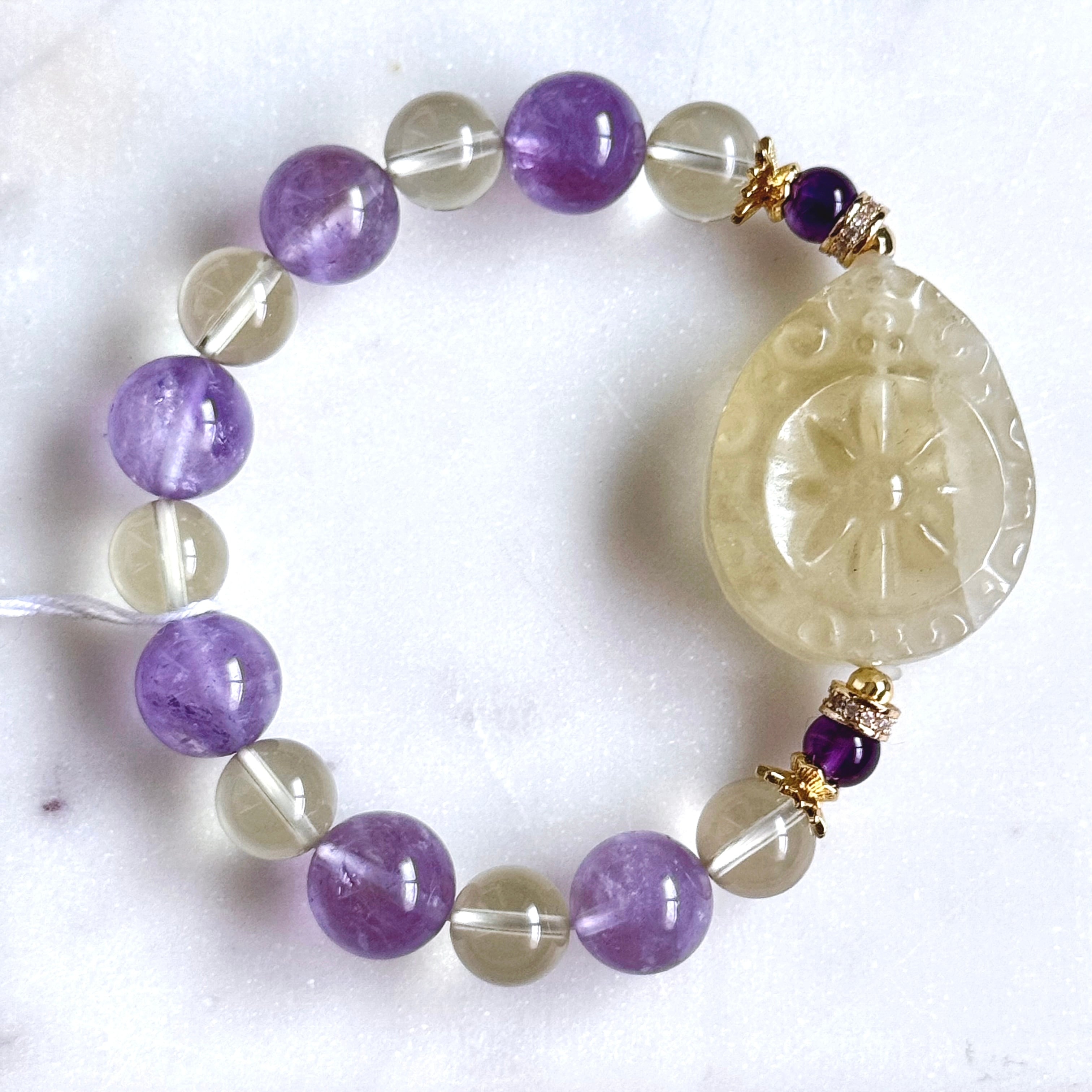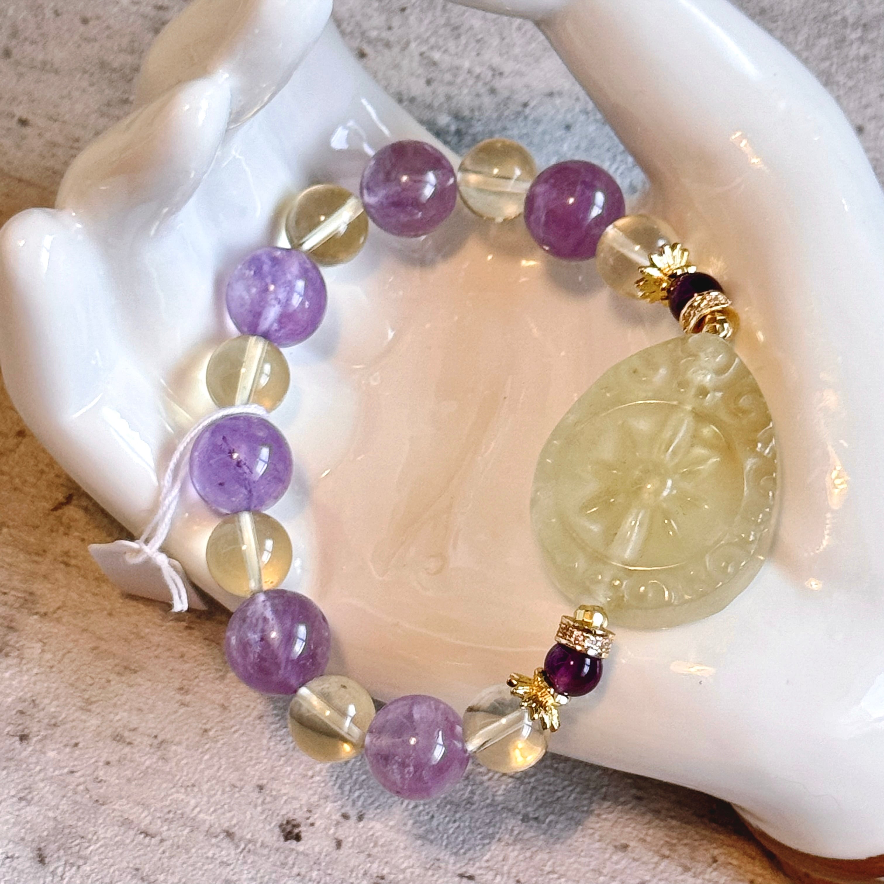 シトリンの法輪と、アメジストを組み合わせた天然石ブレスレット。