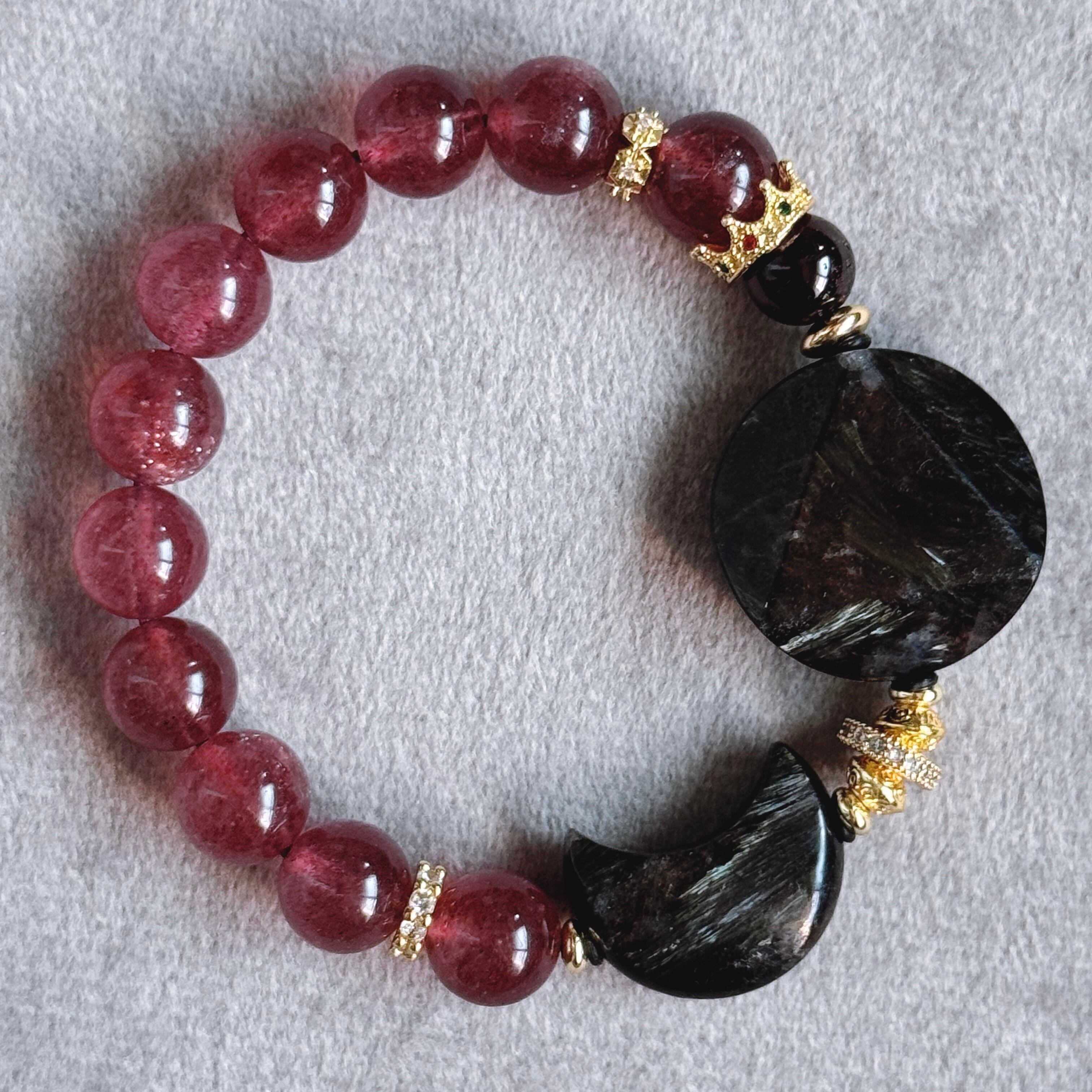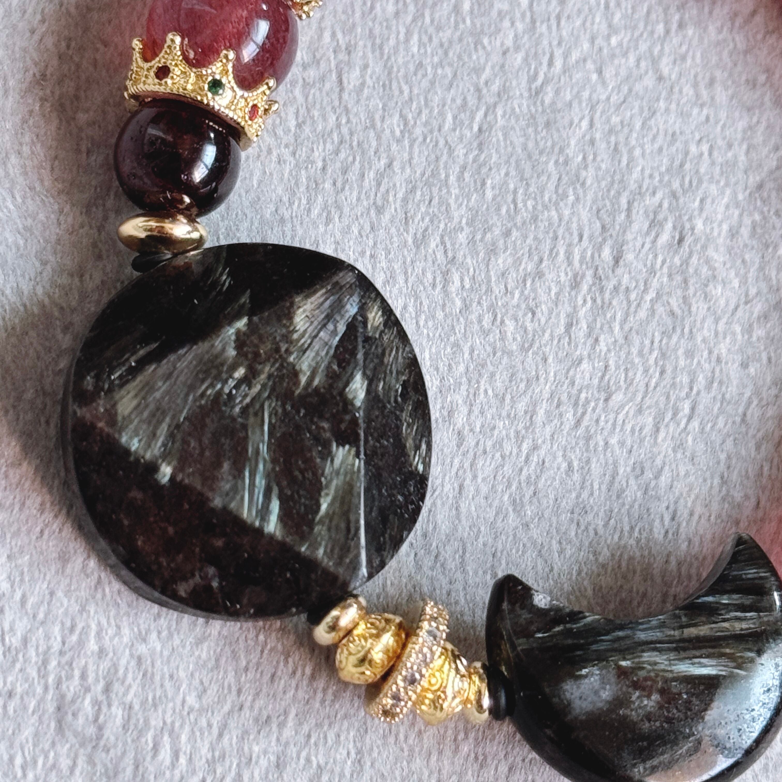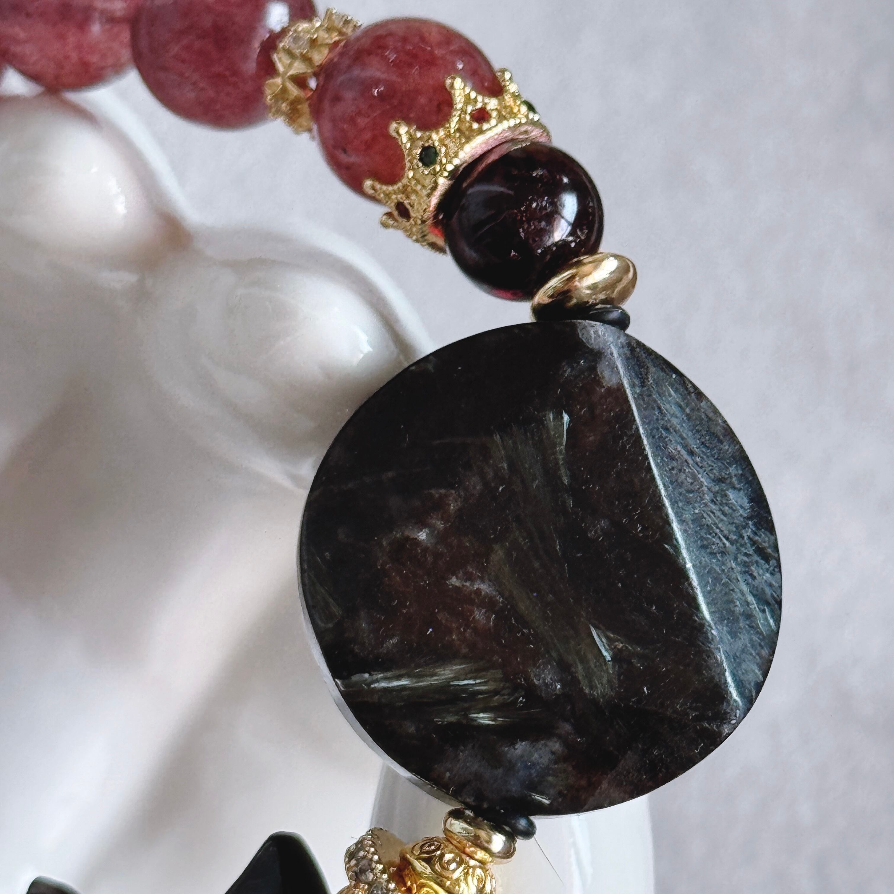 深い夜の力を宿すヌーマイトに、優しい癒しのピンクエピドートを添えたブレスレット。