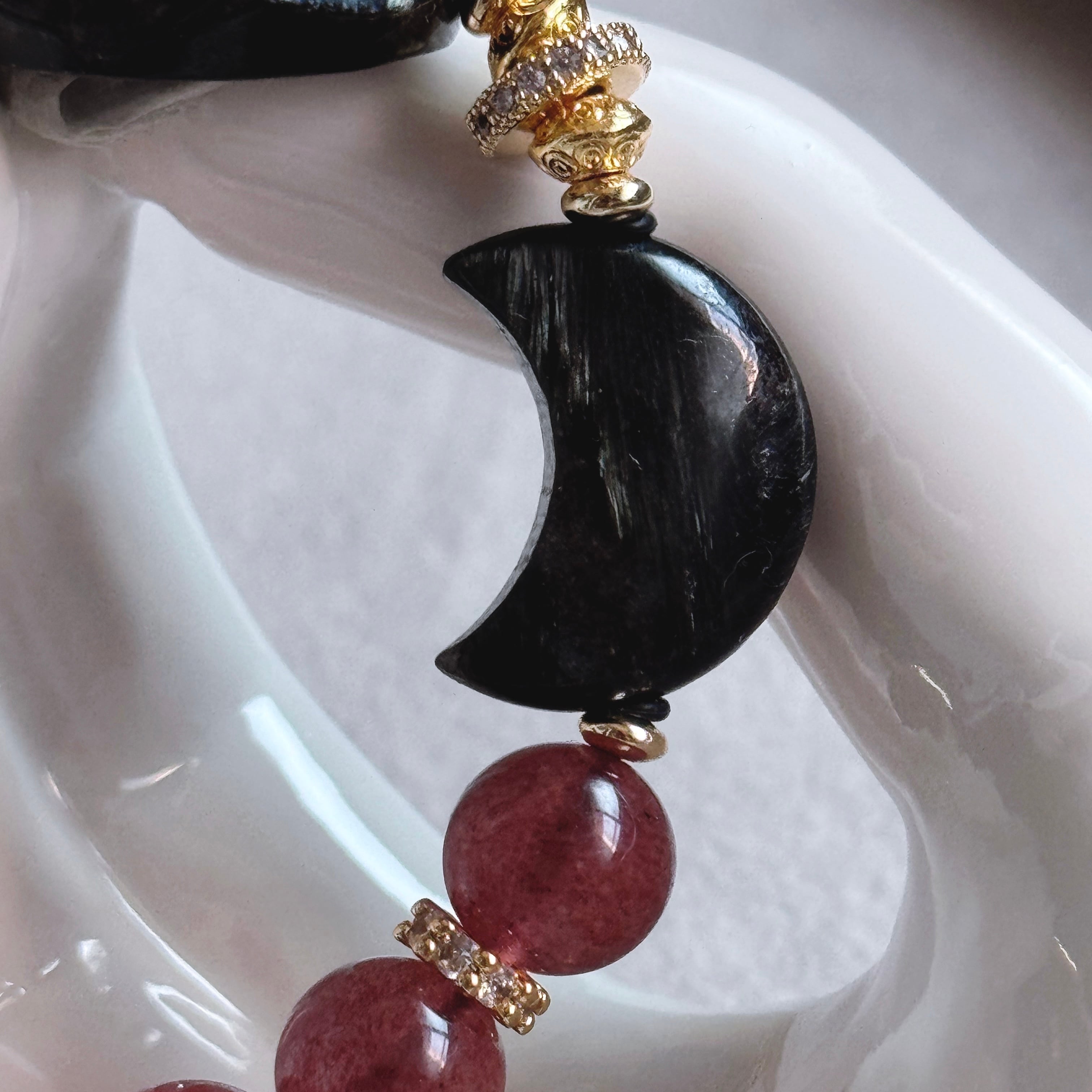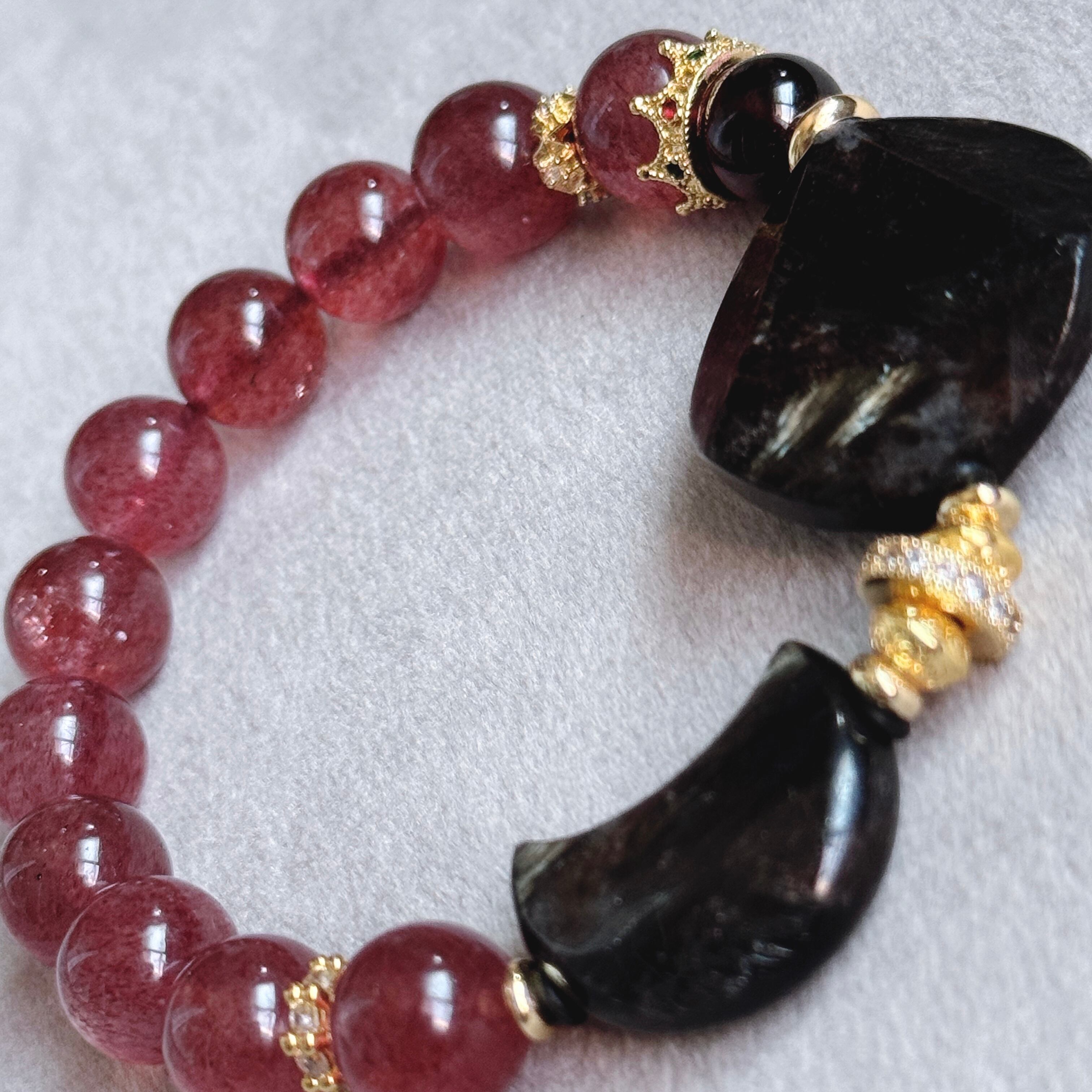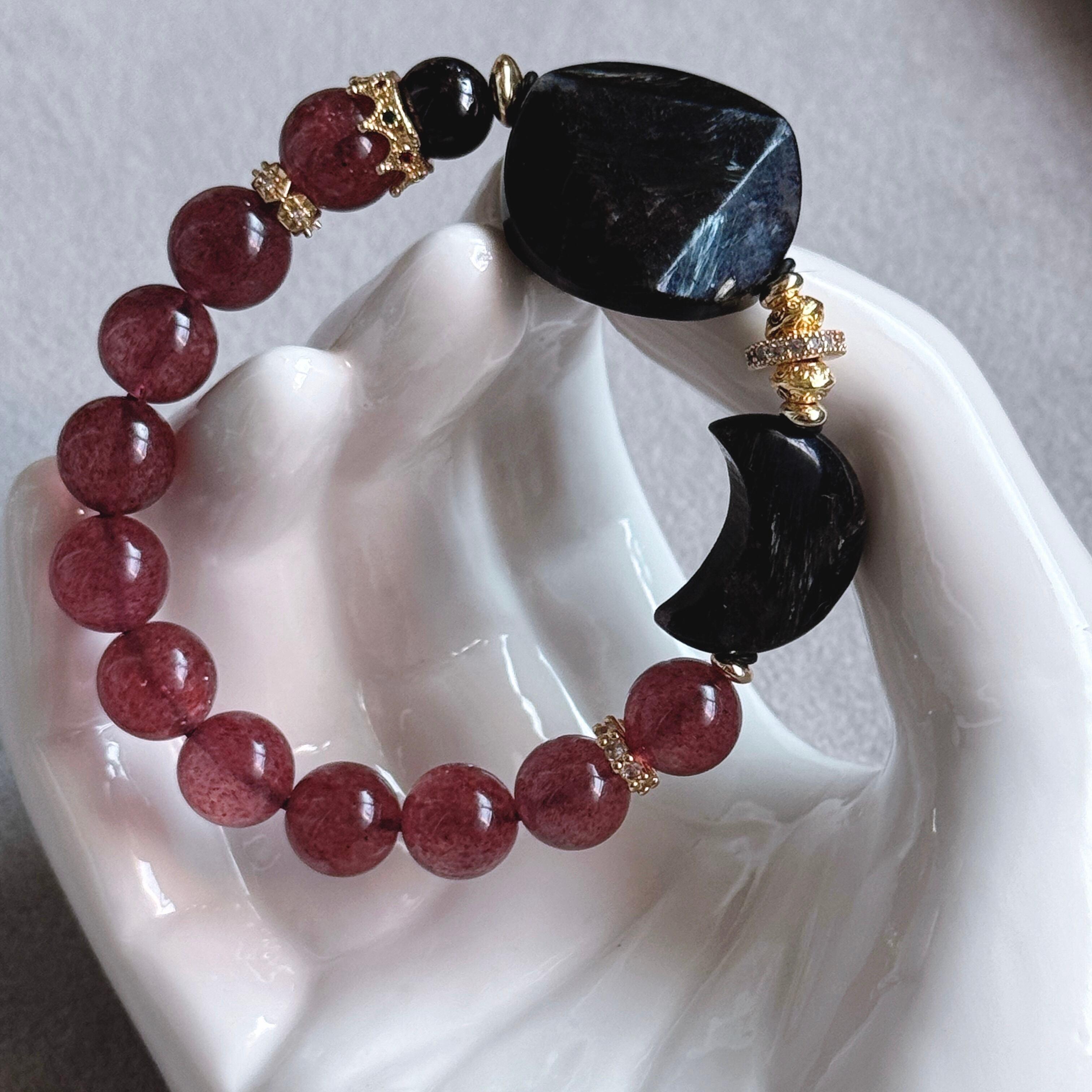 深い夜の力を宿すヌーマイトに、優しい癒しのピンクエピドートを添えたブレスレット。