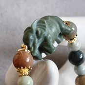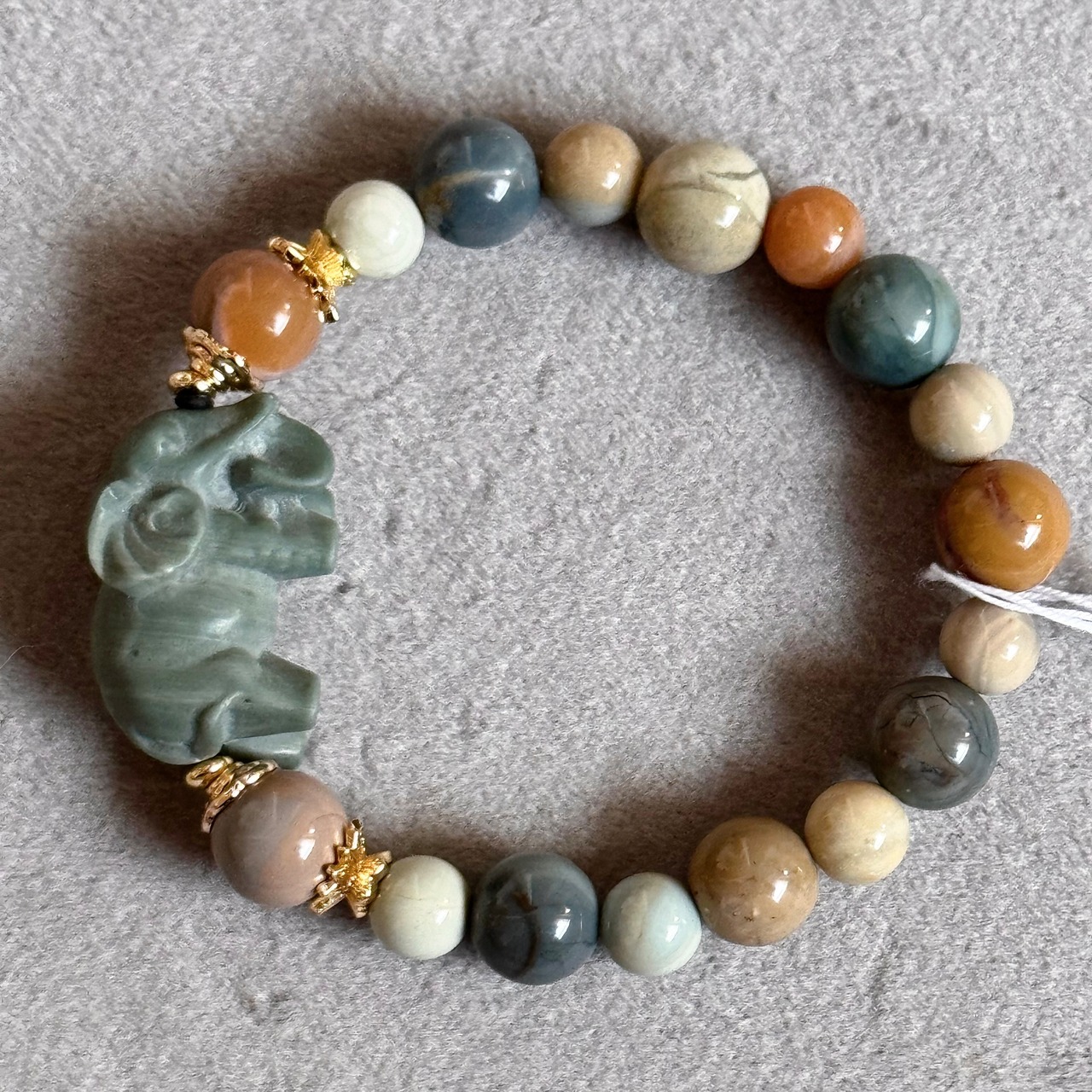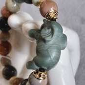 草木色のアラシャン瑪瑙に、幸運と繁栄を運ぶ象のモチーフを合わせたブレスレット。