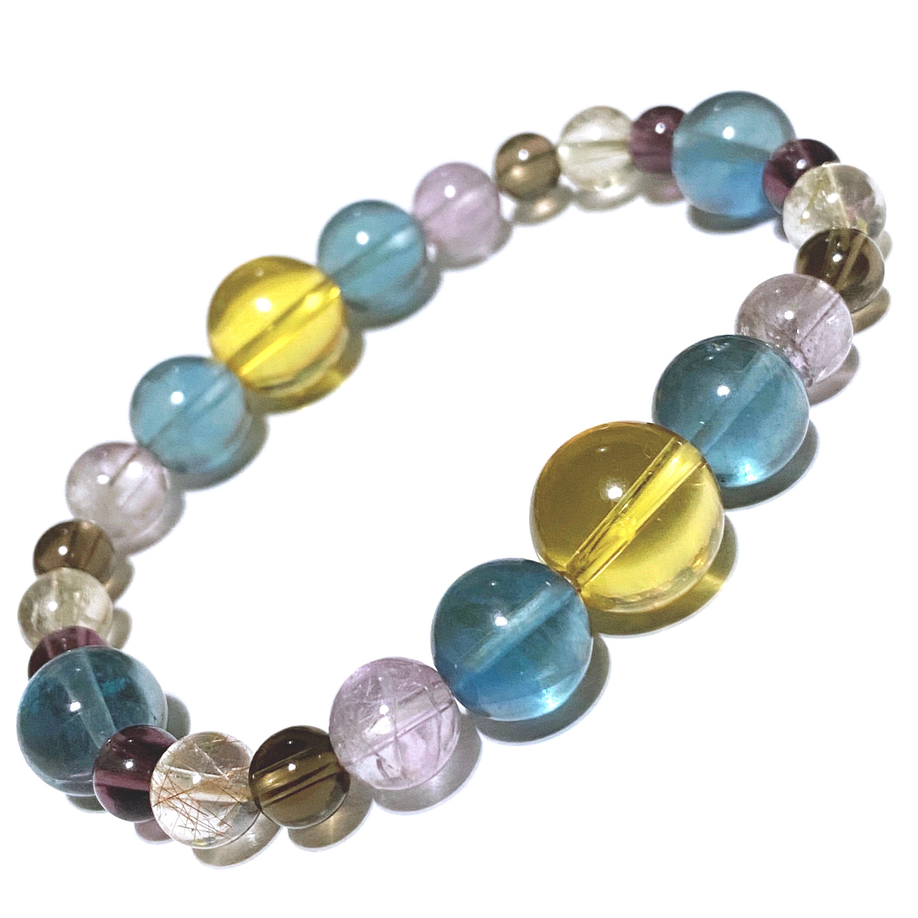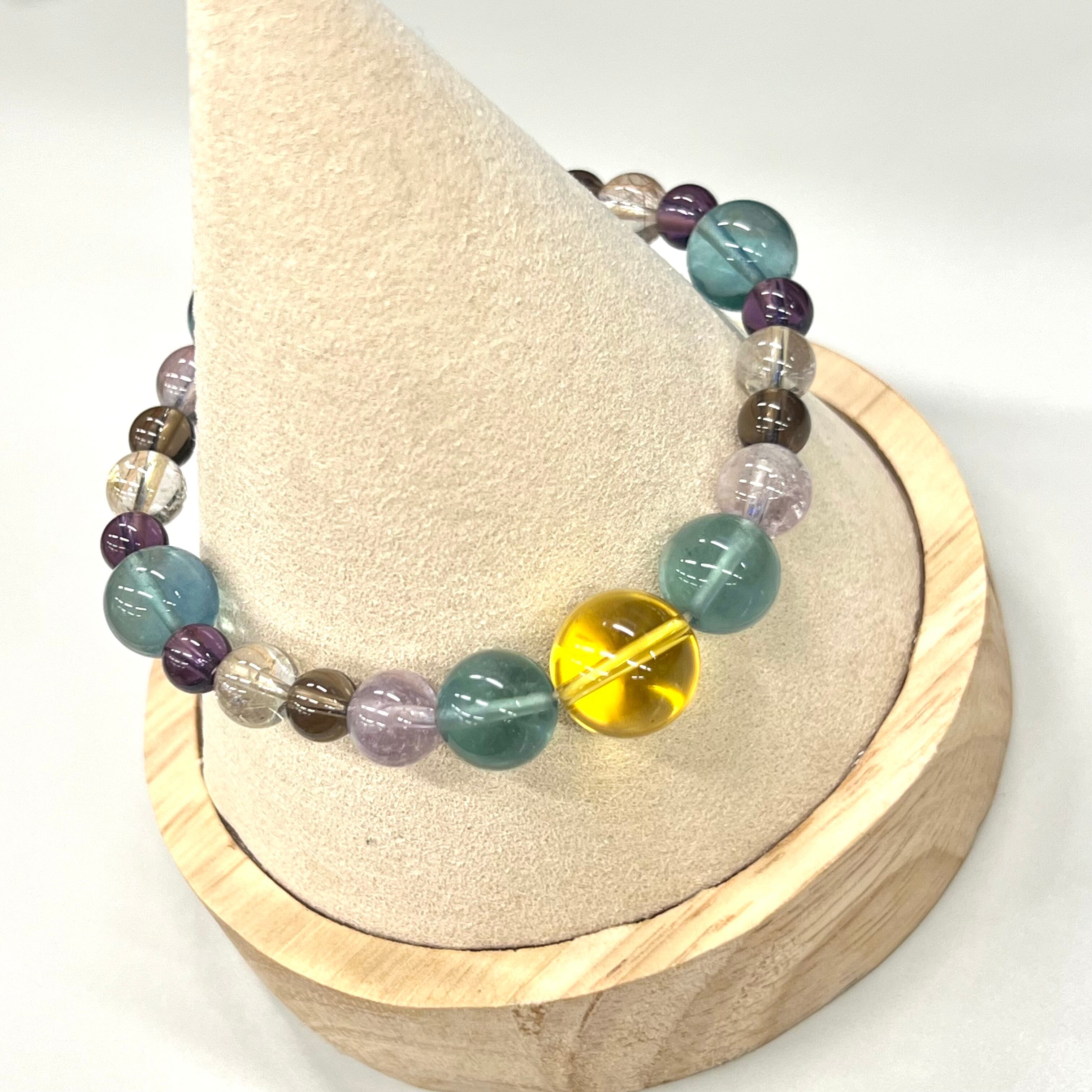 【星詠】フローライト、シトリン、アメジスト 天然石 パワーストーンブレスレット 魔よけ、良縁、癒やし