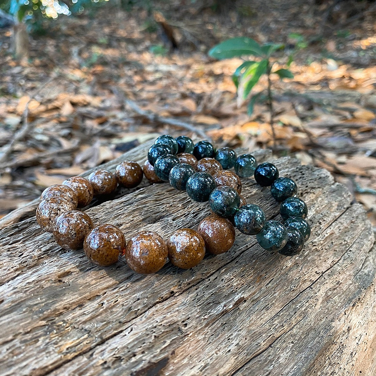 深みのあるモスグリーンの木々が水晶の中に閉じ込められ、千層ガーデンも含まれています。