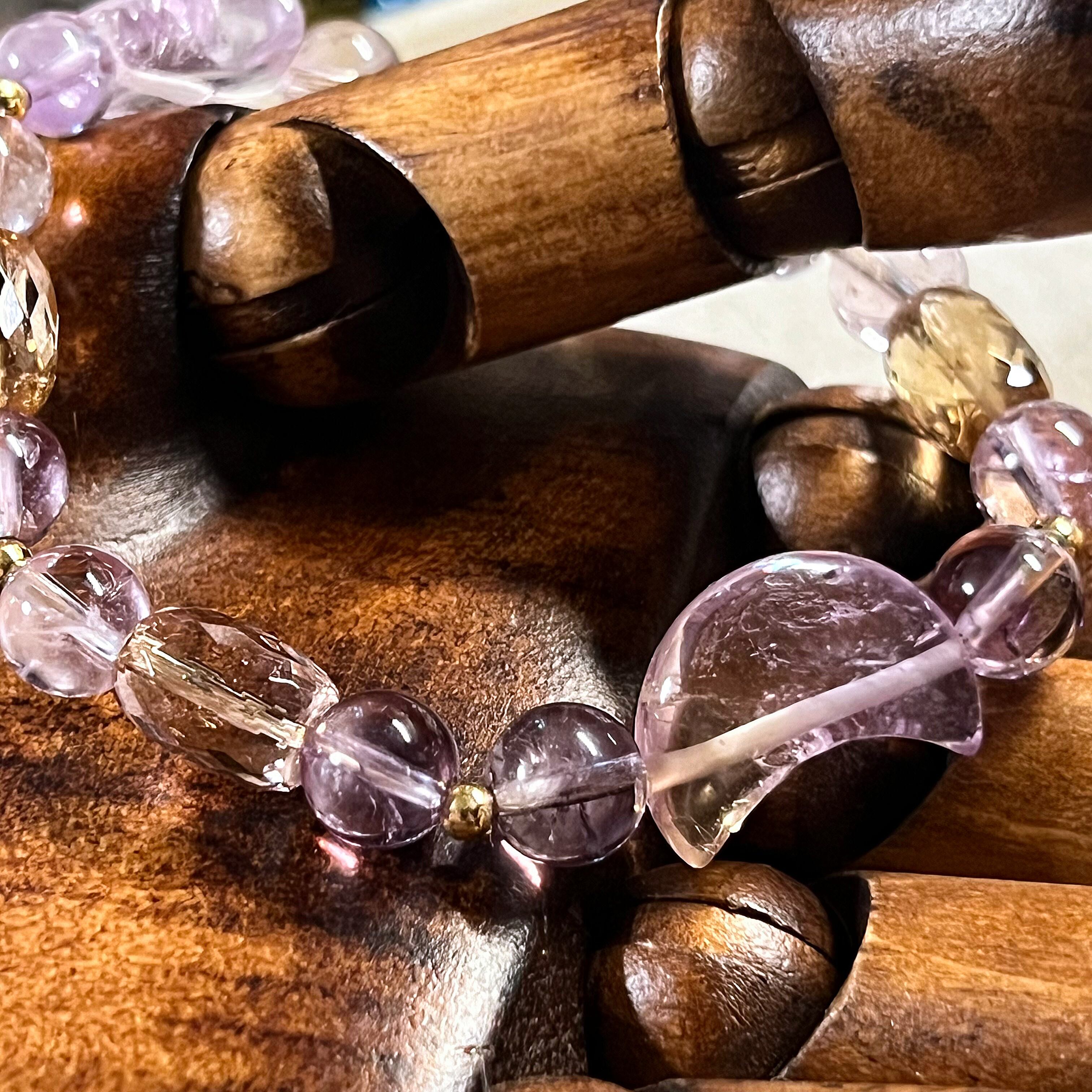 【月星紫黄】アメトリン、アメジスト、シトリン 天然石 パワーストーンブレスレット 金運、人間関係、恋愛運