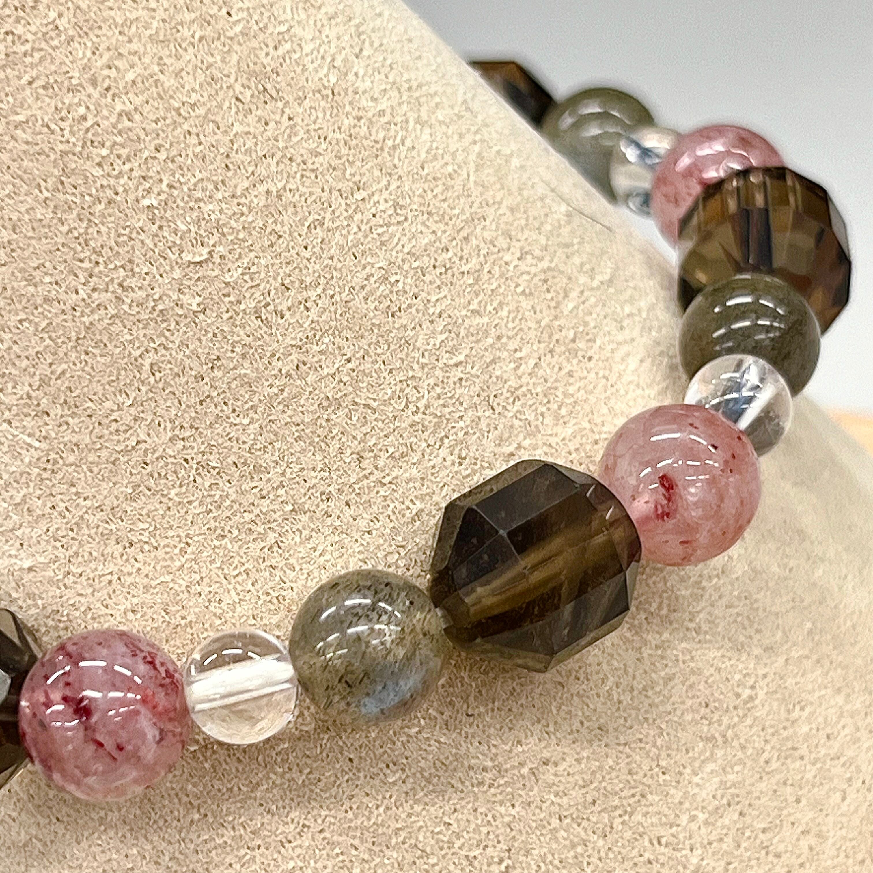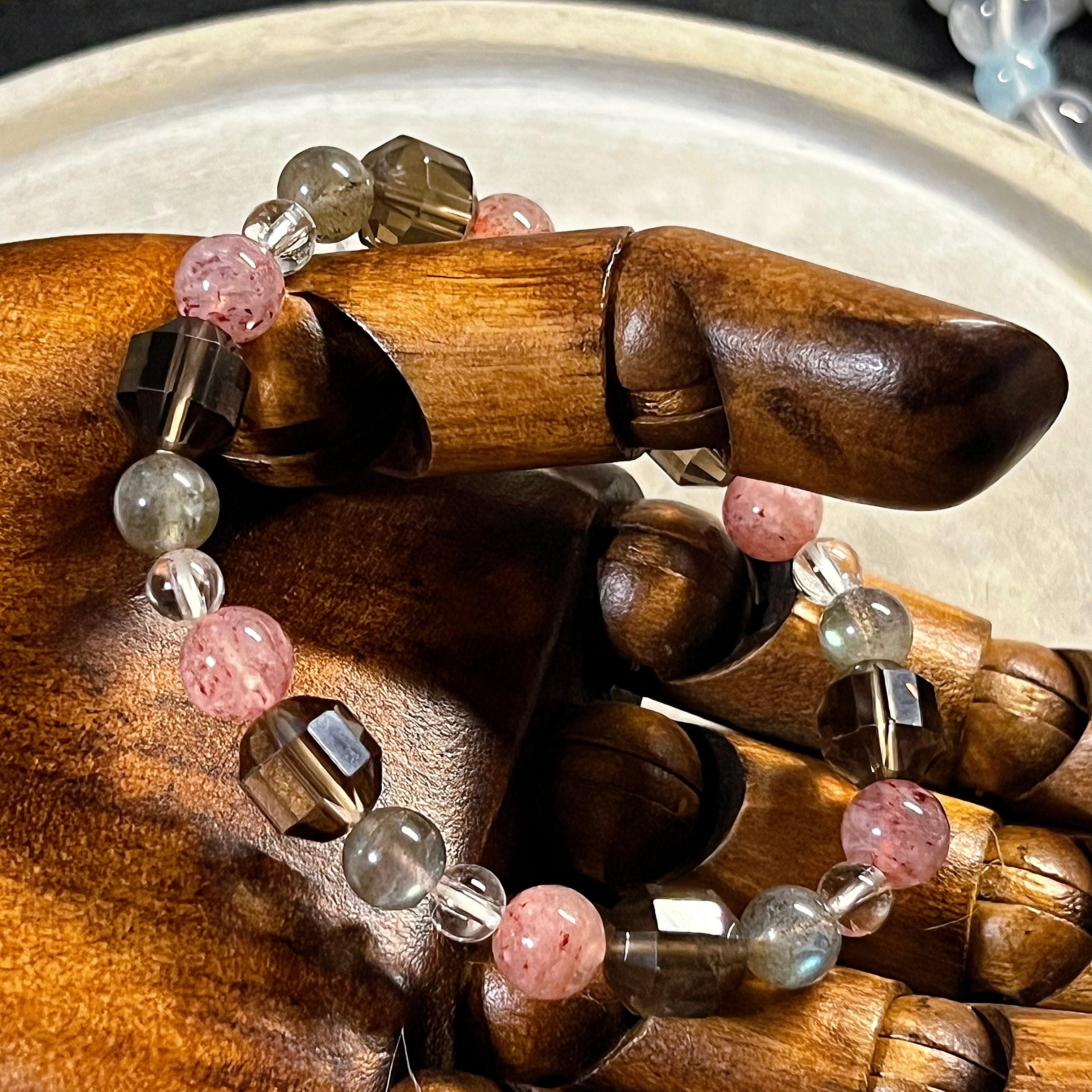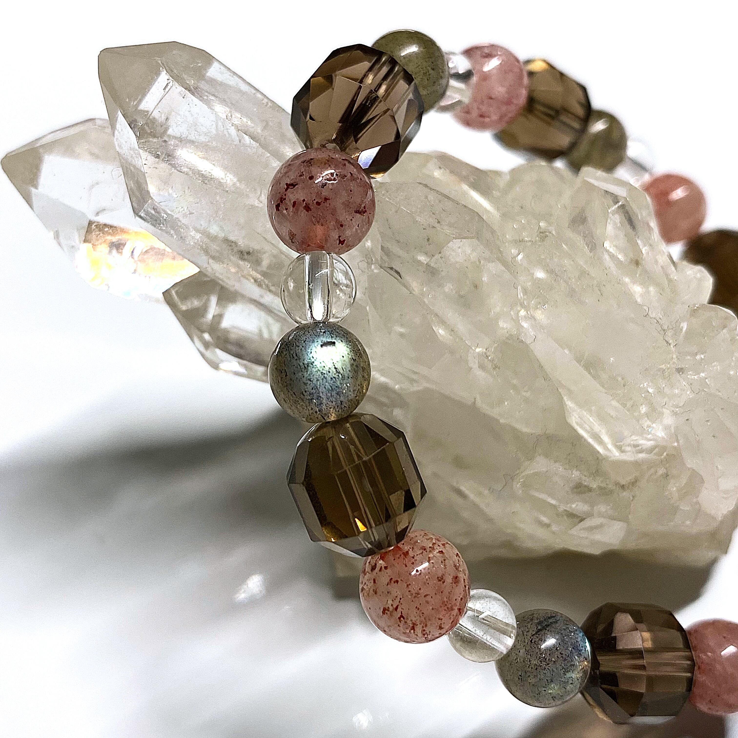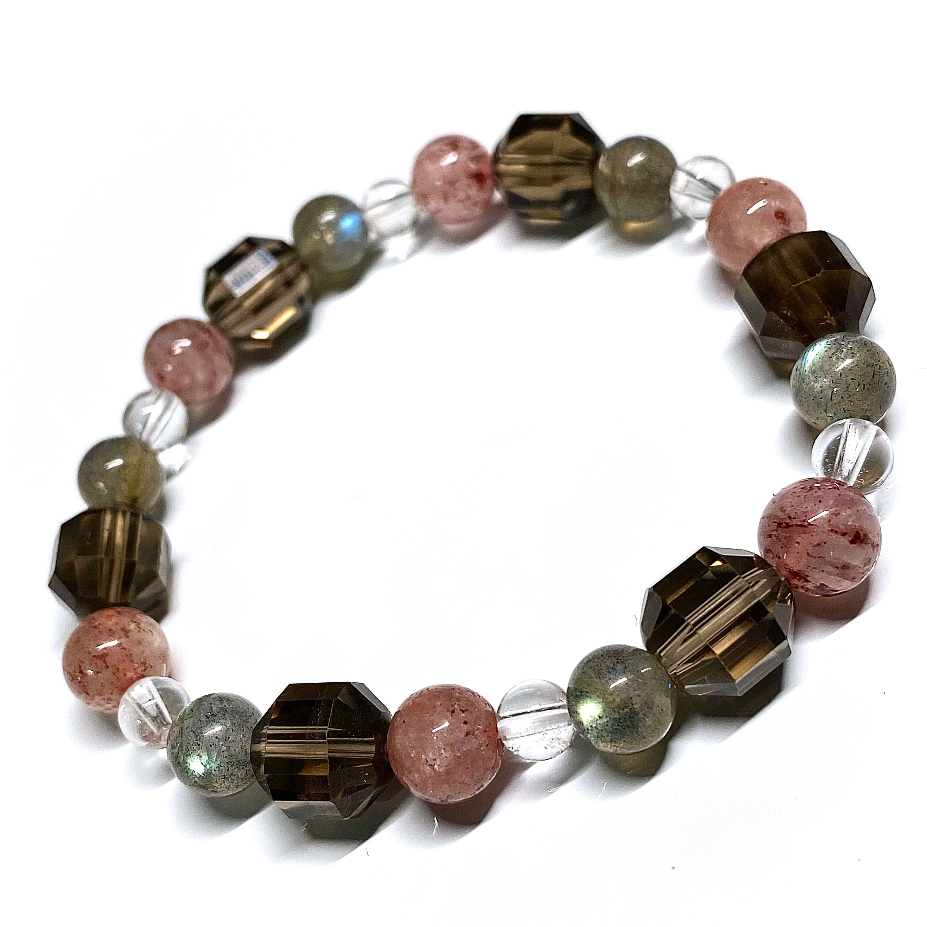 【祥鳳】ストロベリークォーツ、ラブラドライト、スモーキークォーツ 天然石 パワーストーンブレスレット 開運、恋愛運、縁結び