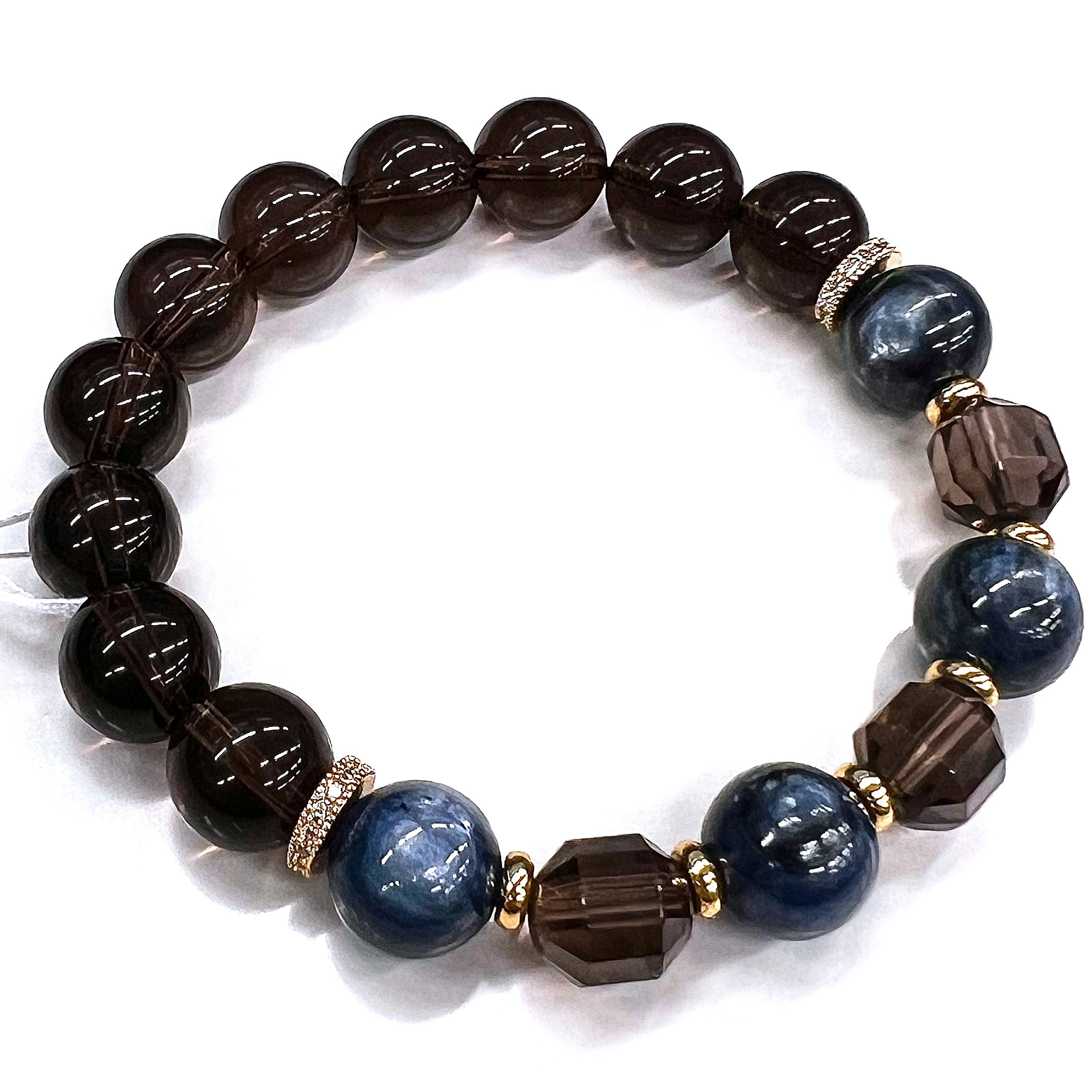 カイヤナイト × スモーキークォーツ 天然石 パワーストーンブレスレット 浄化済