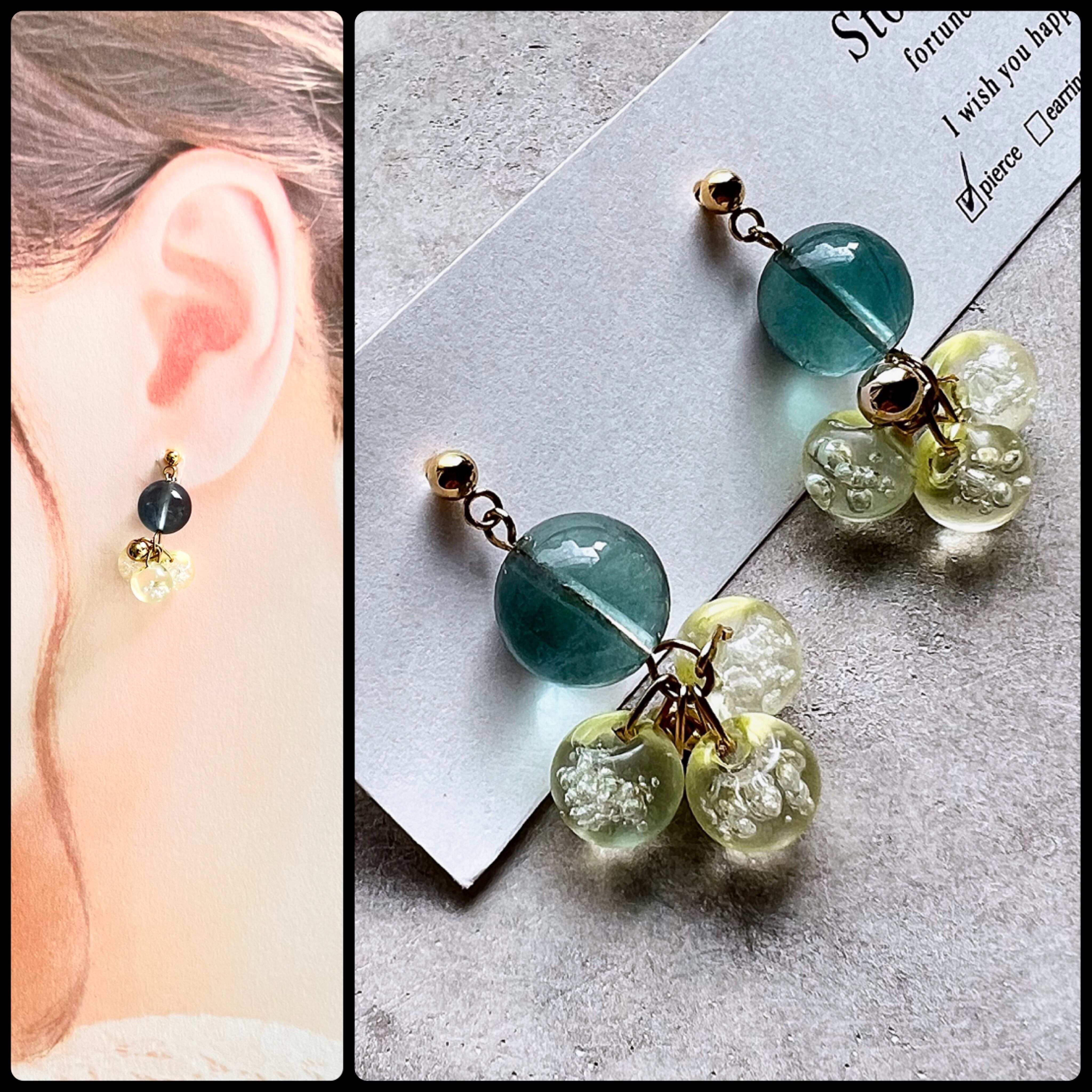 ブルーフローライト 鈴丸 ピアス/イヤリング アレルギー対応 天然石 ハンドメイド アクセサリー