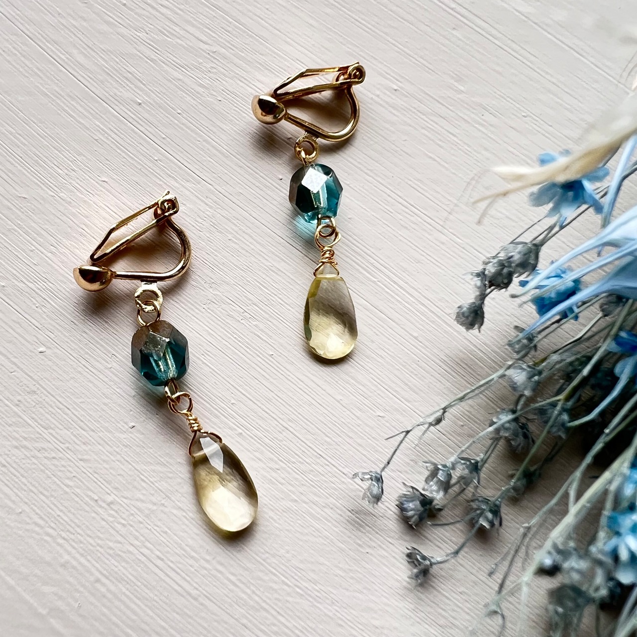 【天然石のお守りイヤリング】レモンクォーツ パワーストーン ハンドメイドアクセサリー