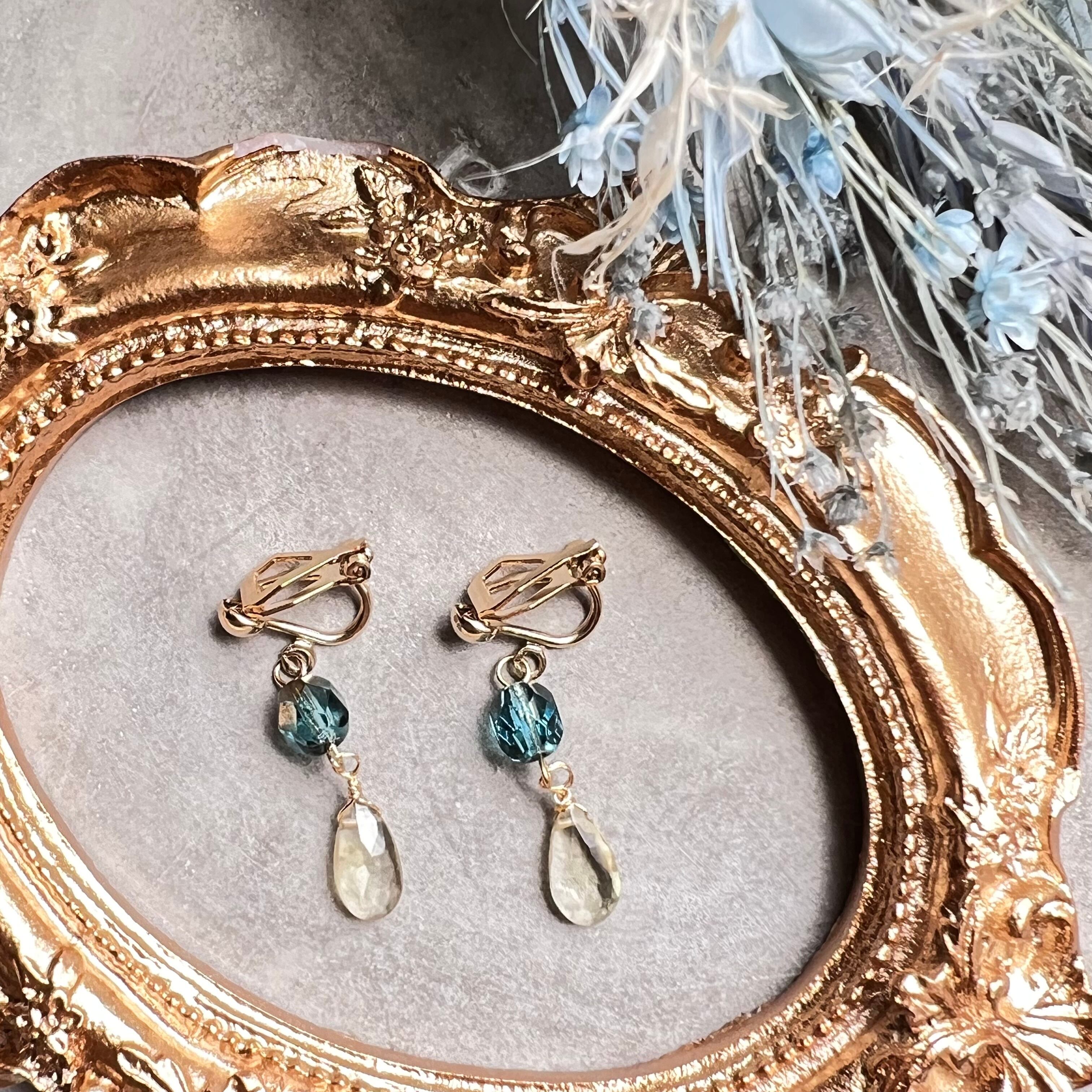 【商品説明】爽やかなレモン色の水晶にチェコビーズのインディゴブルーで引き締めました。