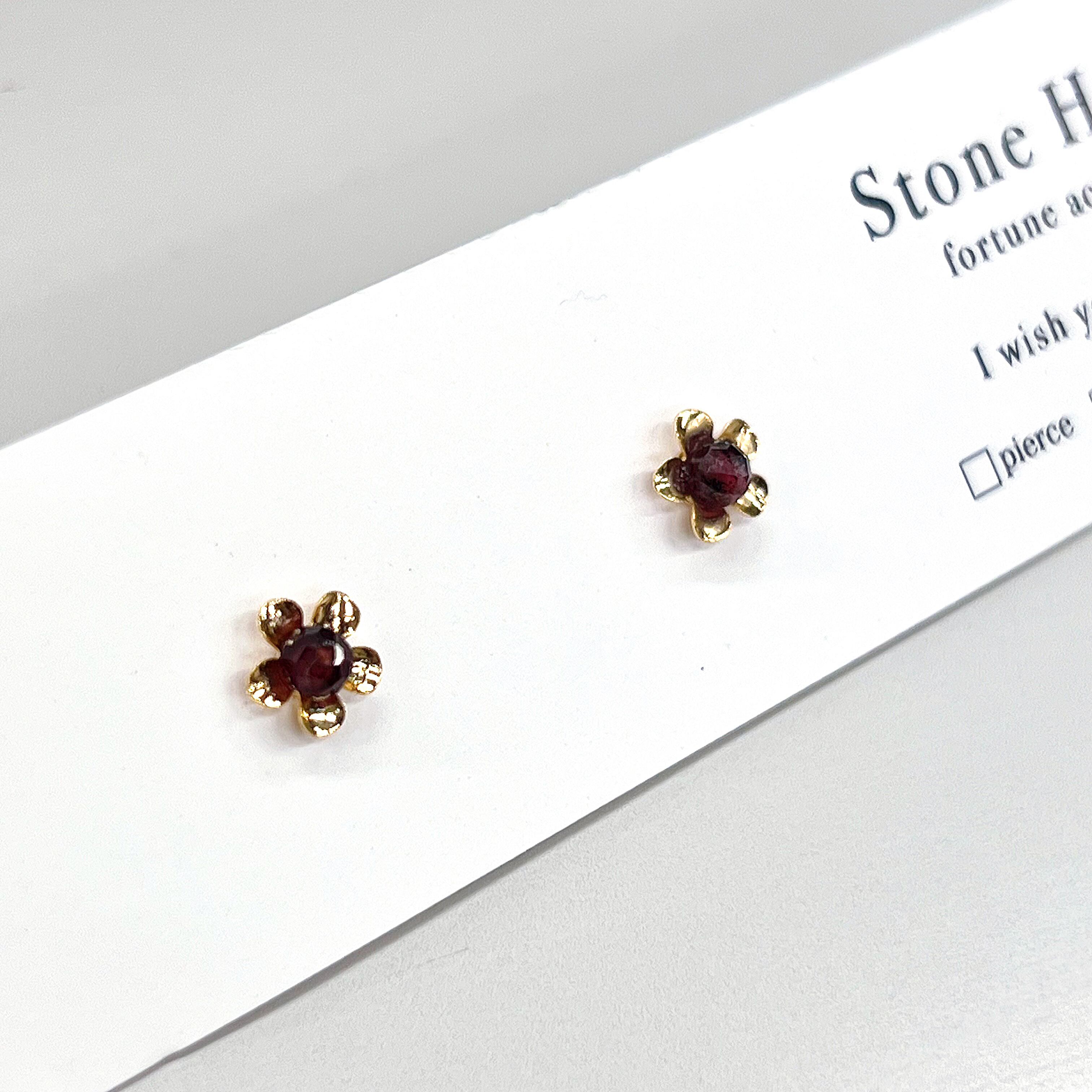 ガーネット フラワー ピアス お花 ゴールド シンプル アレルギー対応 天然石アクセサリー