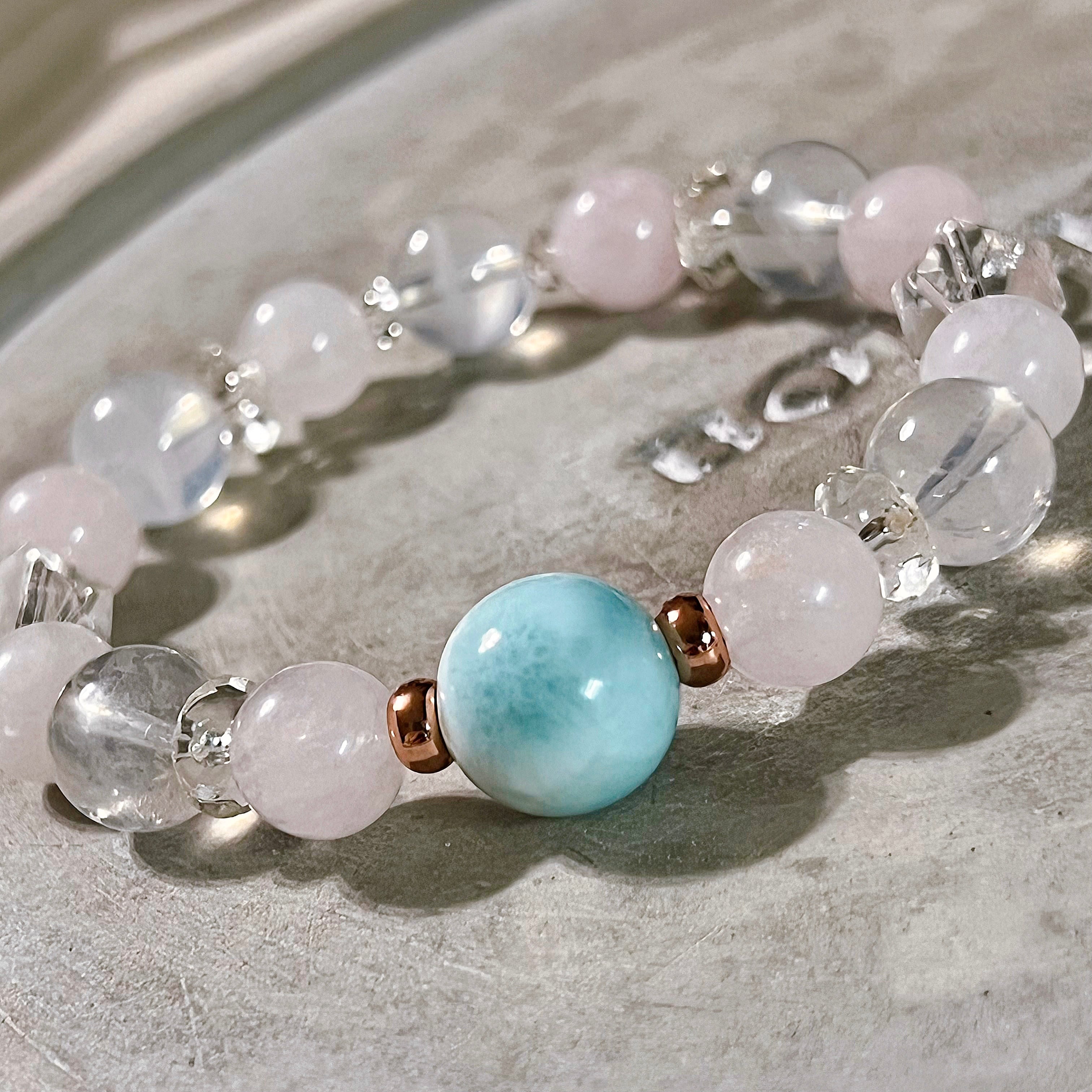 ◆豊玉姫◆ラリマー、ローズクォーツ、水晶 天然石 パワーストーンブレスレット 恋愛運 結婚運 縁結び 子宝