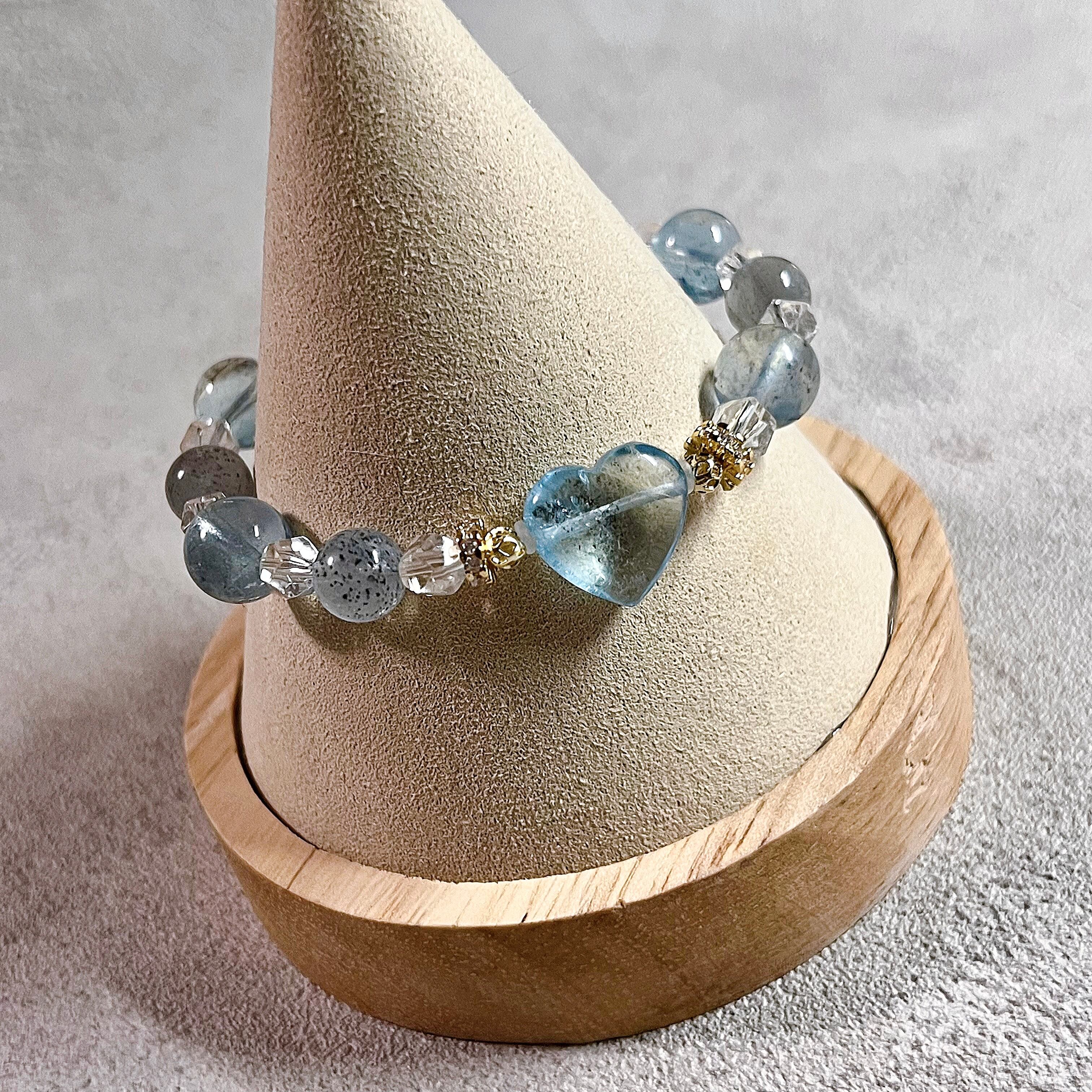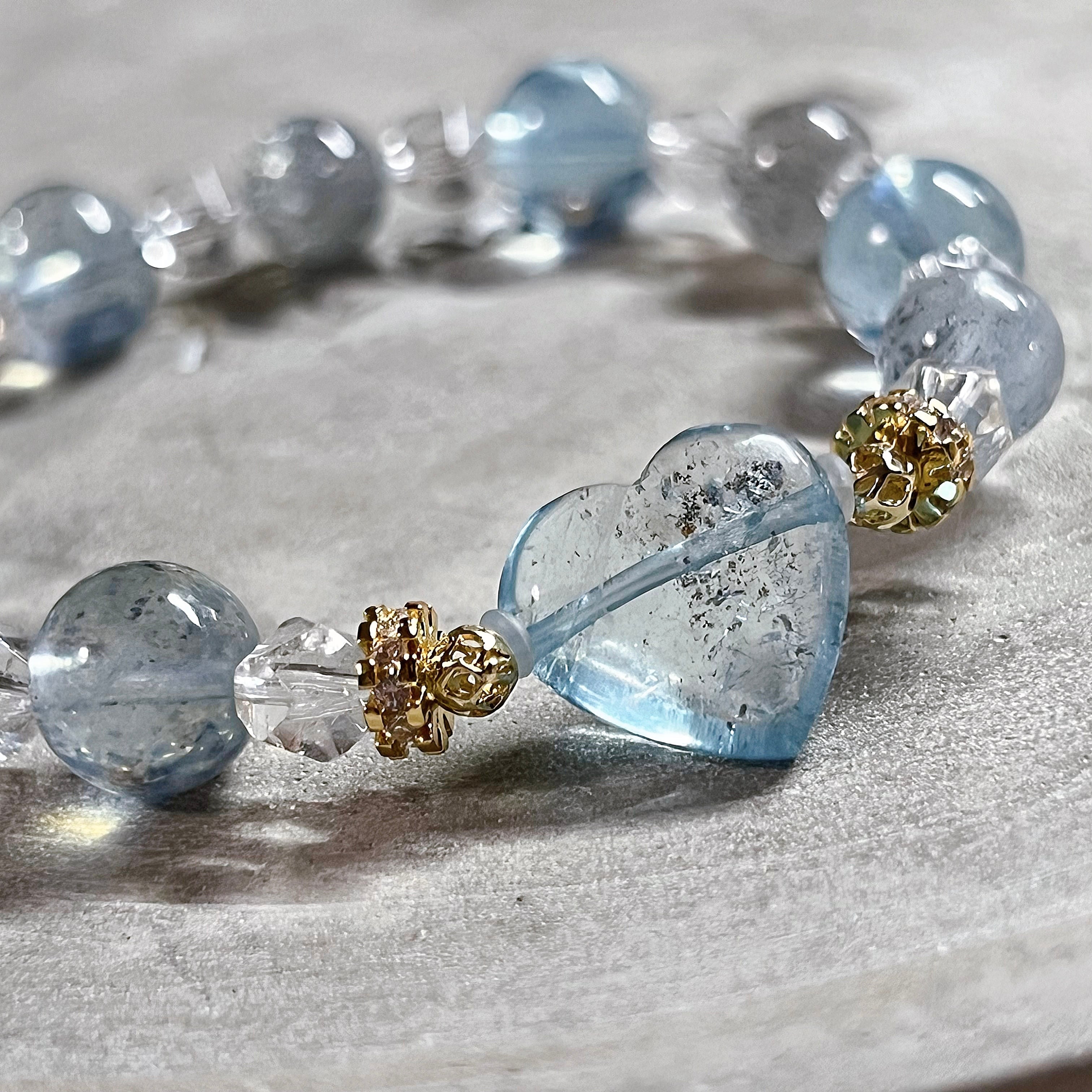 高品質 ハート モスアクアマリン 天然石 パワーストーンブレスレット 結婚運、癒し、対人関係