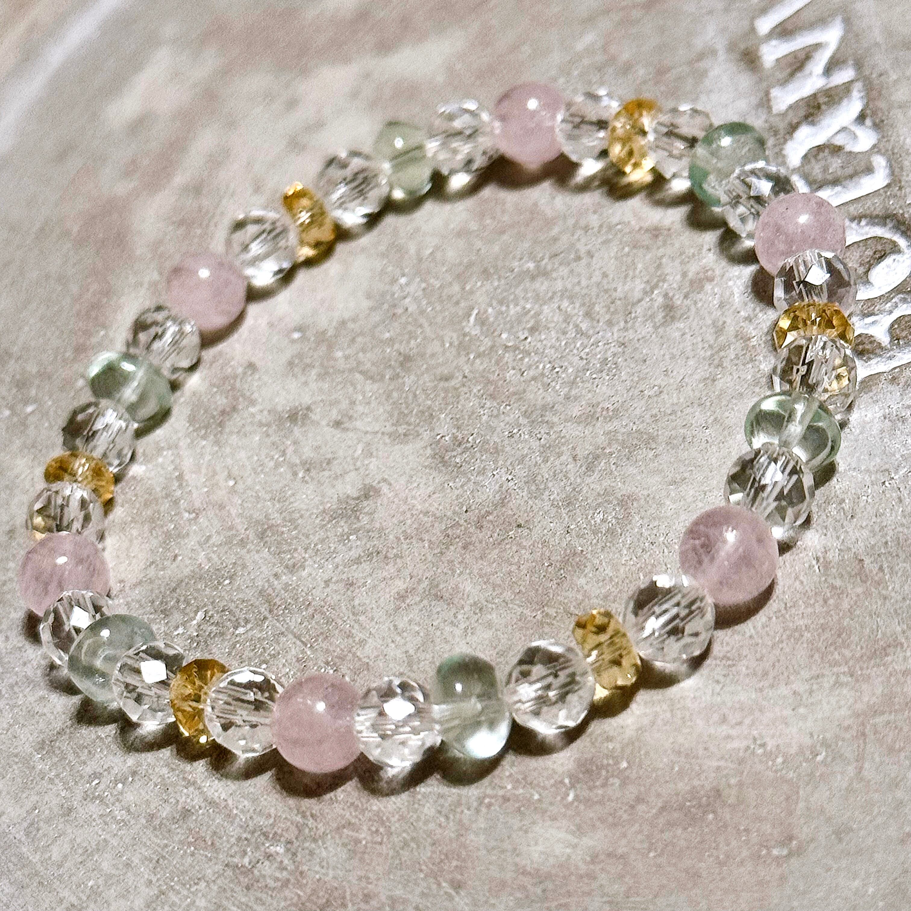 【天花】水晶とカラーストーンの光り輝くお守り腕輪 パワーストーンブレスレット 天然石アクセサリー