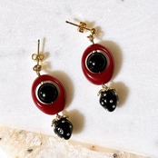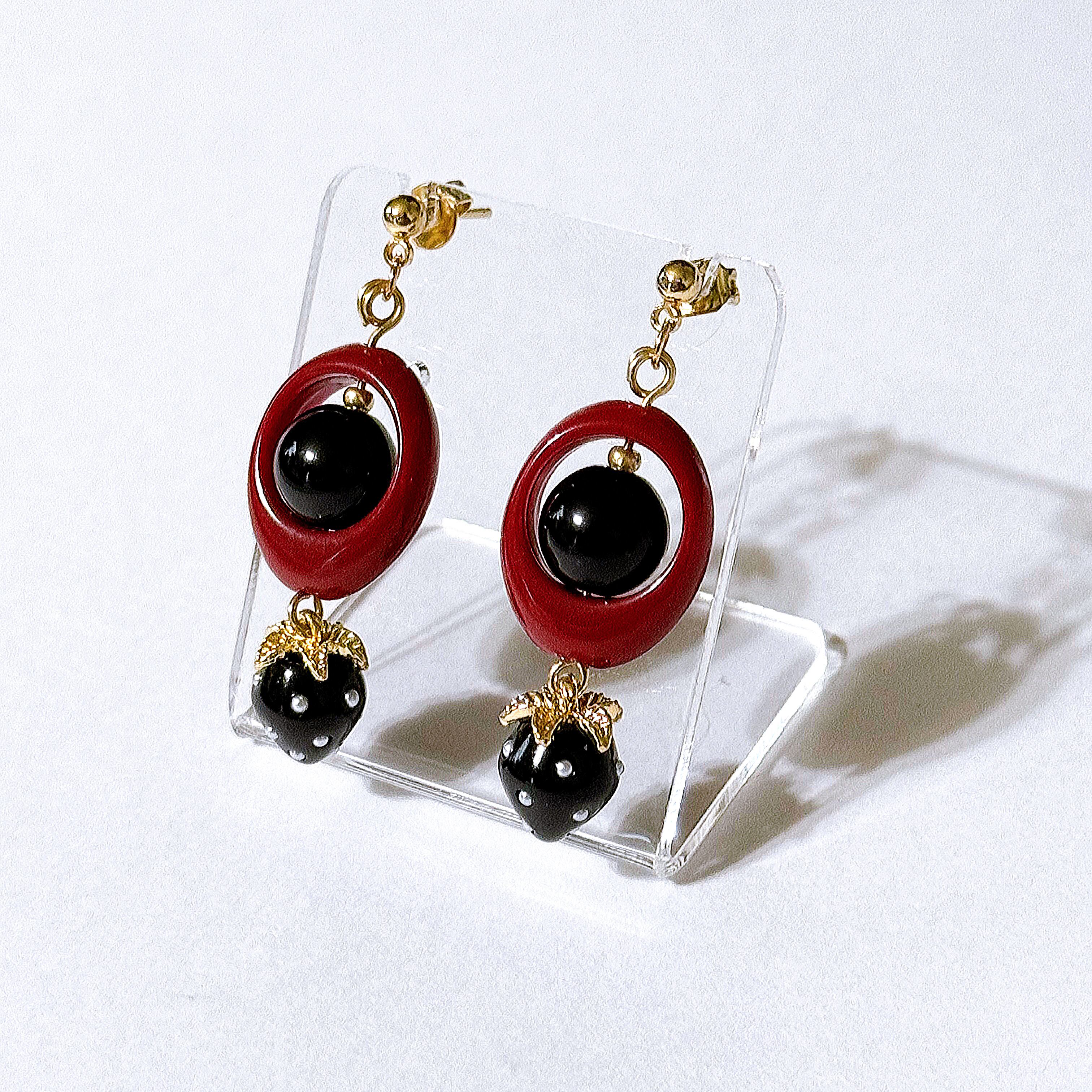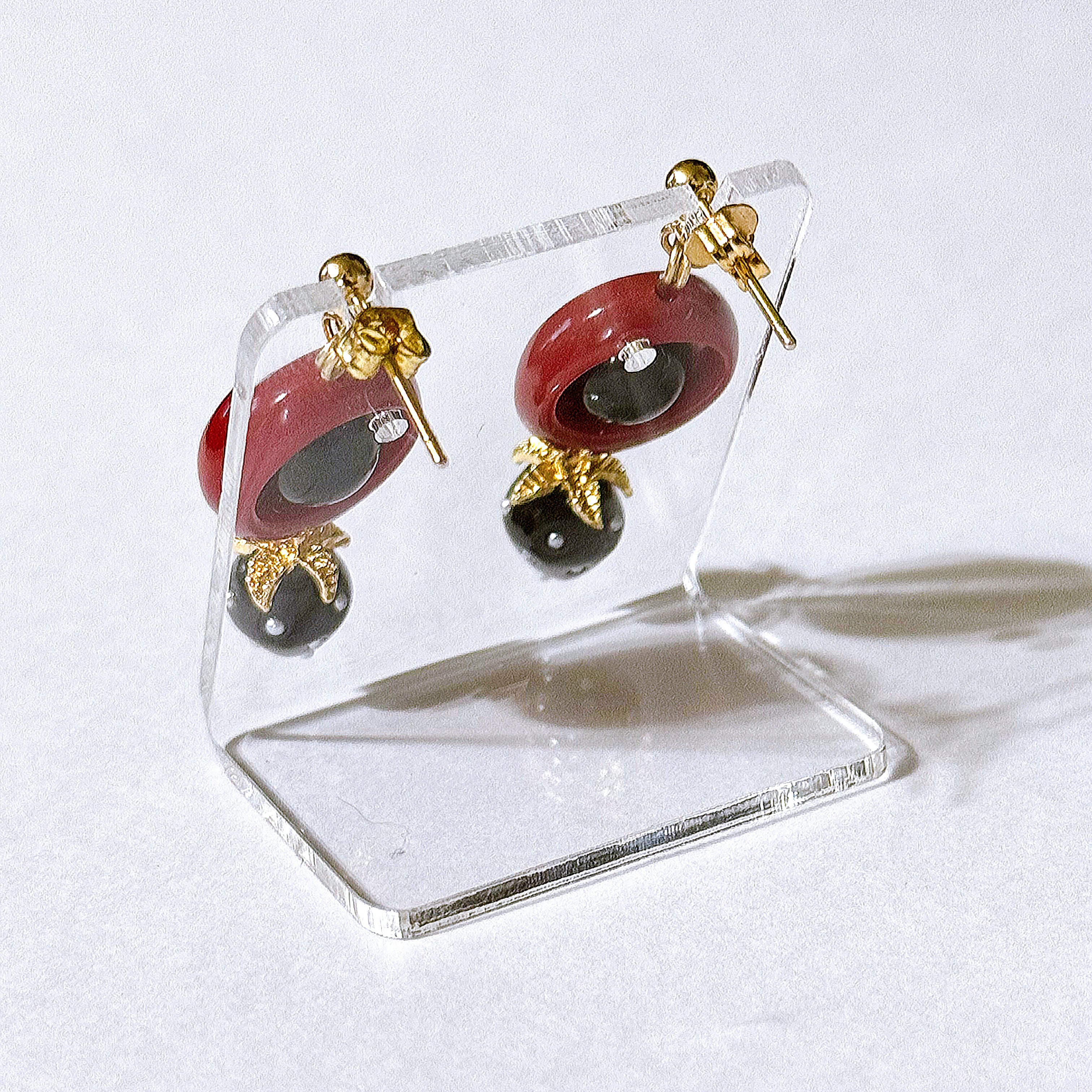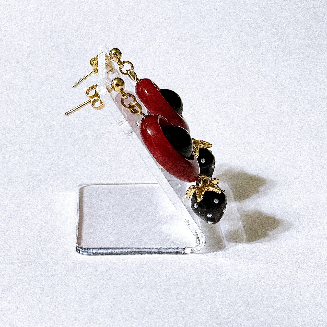 オニキス 苺 イヤリング/ピアス 黒✕赤 アレルギー対応 天然石 アミュレット ジェムストーン