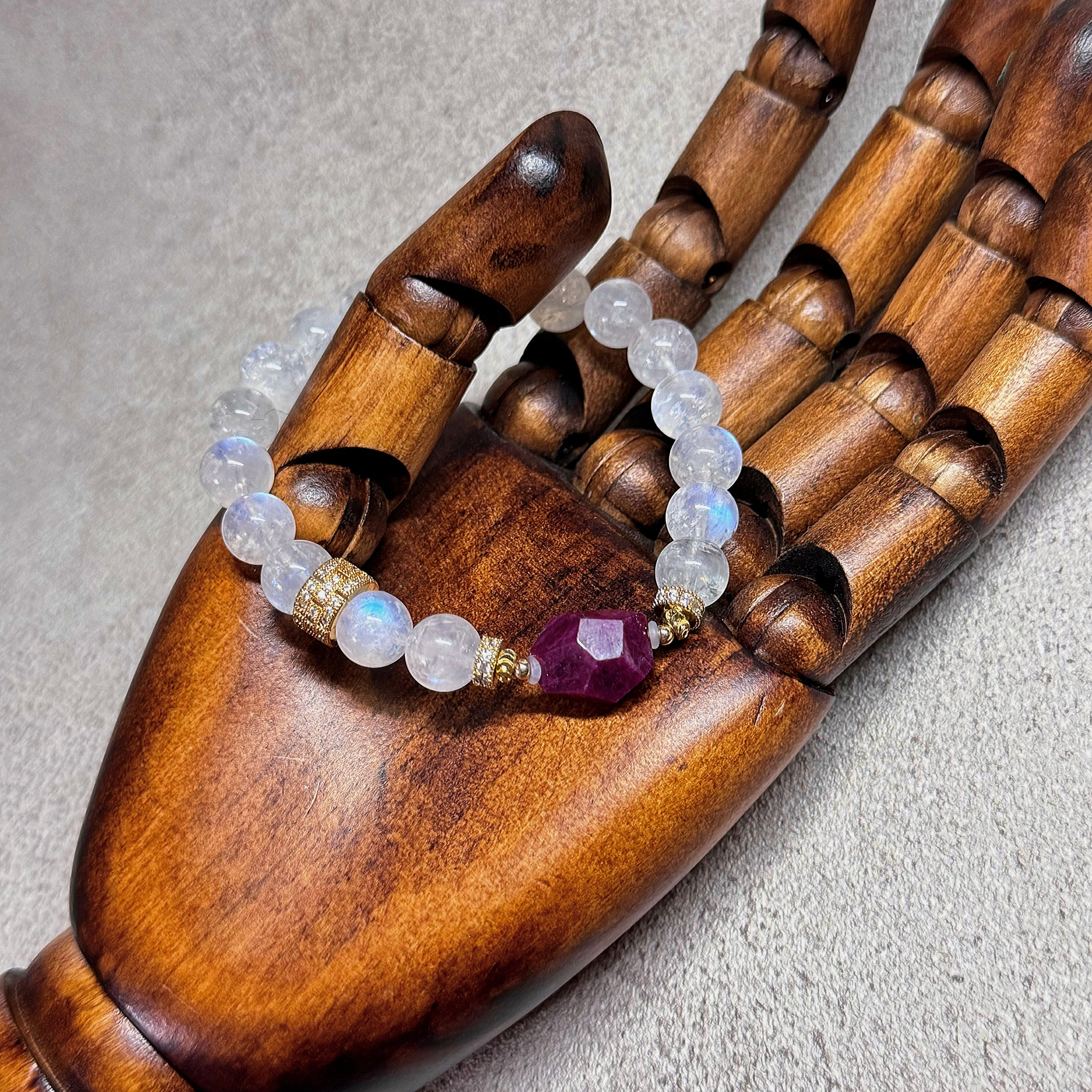 ブルームーンストーンと組み合わせたルビーデザインブレスレットです。