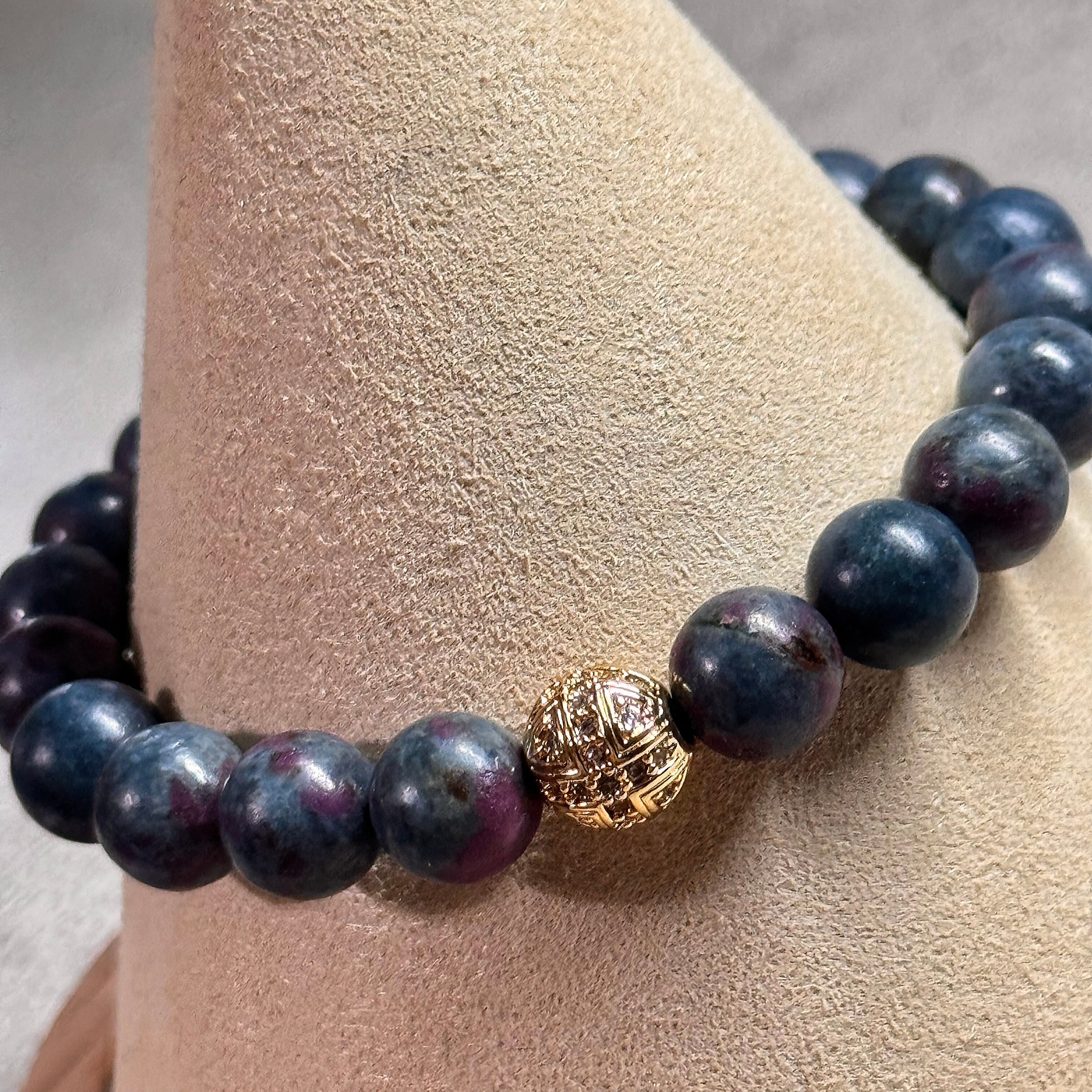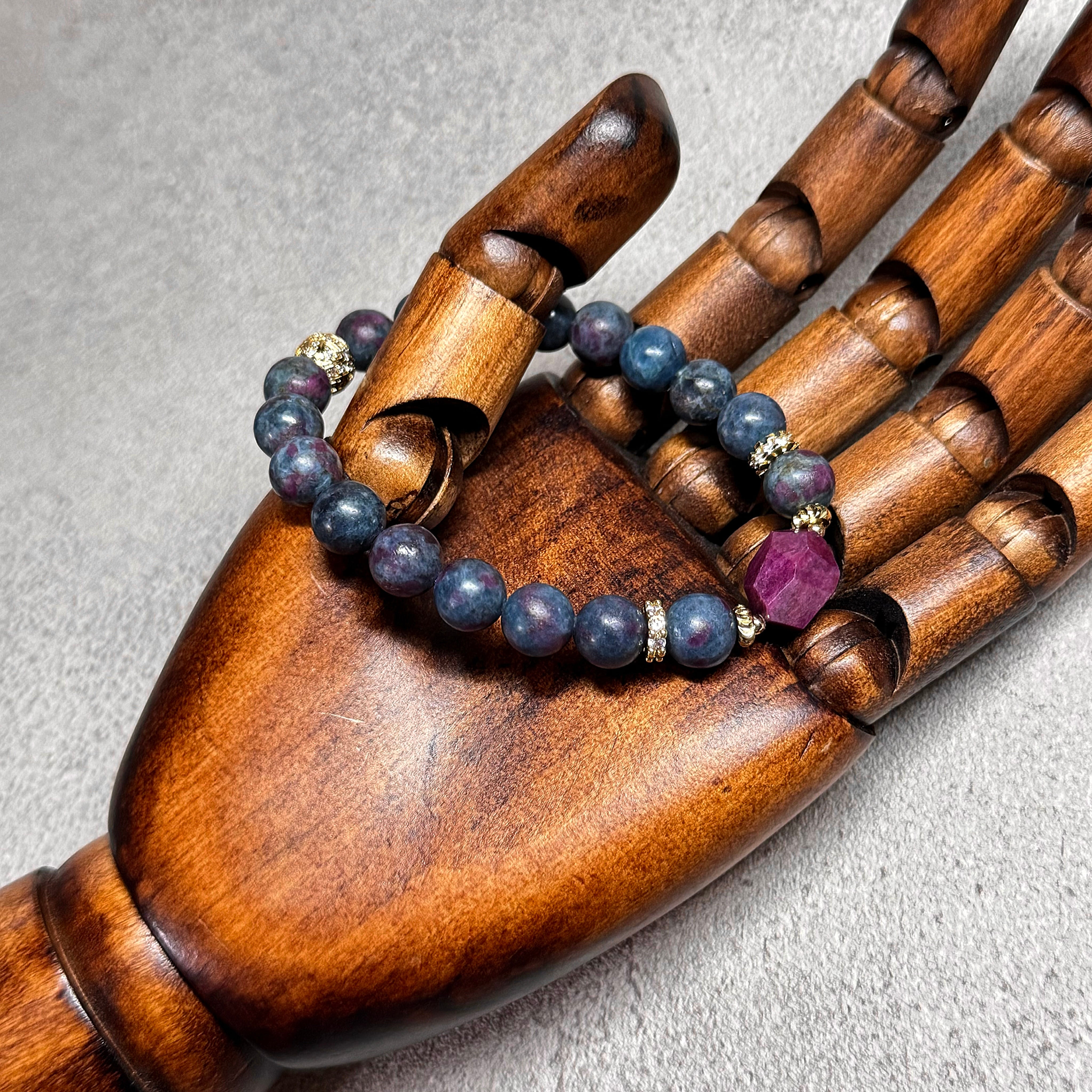 【巧月・藍】7月の誕生石ルビー&ルビーインカイヤナイト パワーストーンブレスレット 天然石アクセサリー