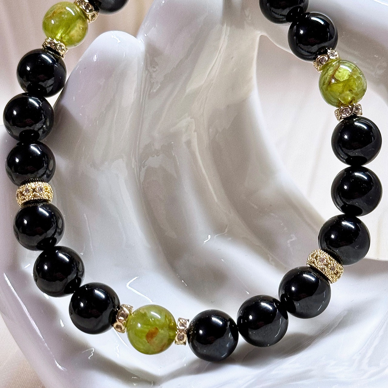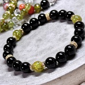 貴重な7mm後半サイズのペリドットとブラックスピネルを使ったデザインブレスレット