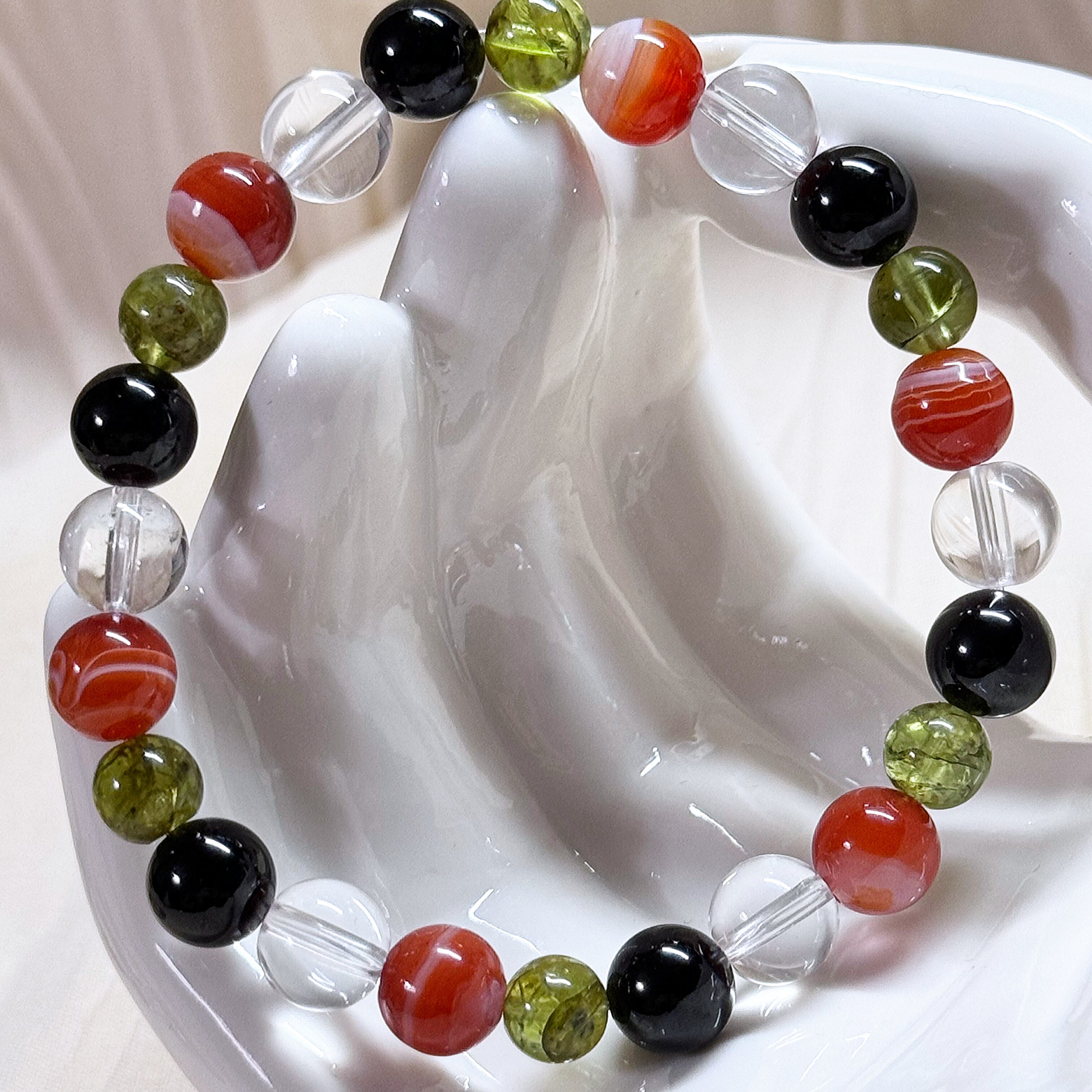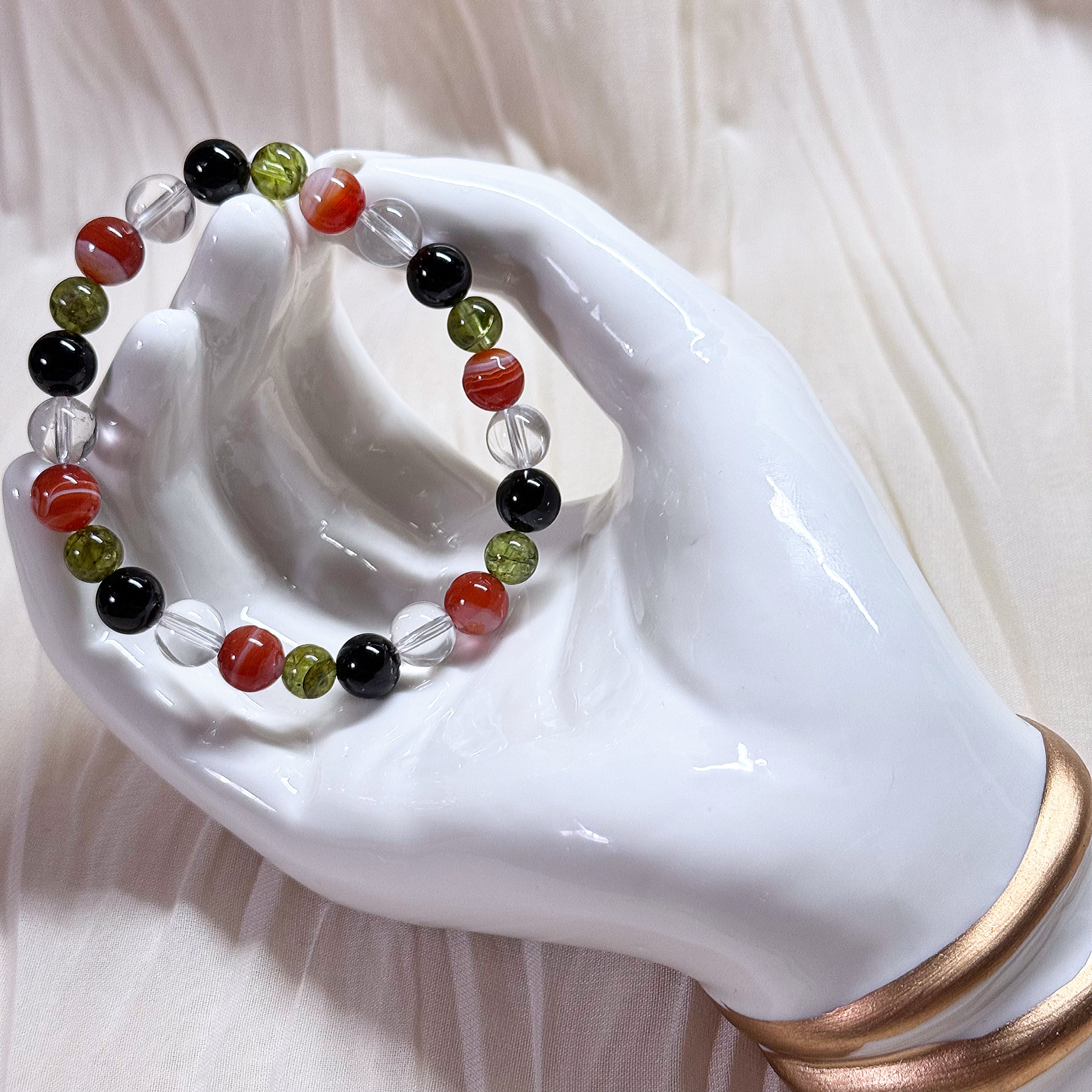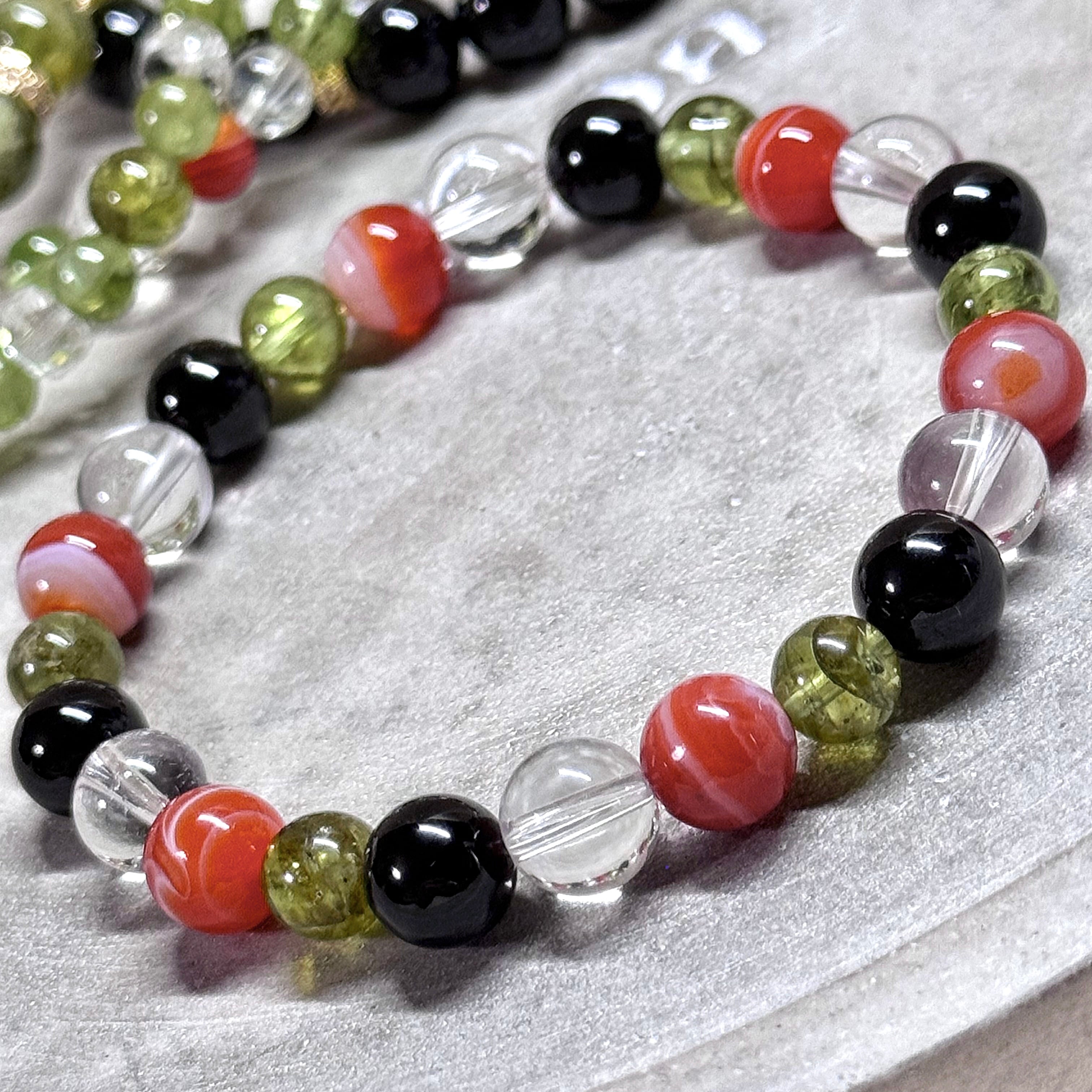 ペリドット、ブラックスピネル、サードオニキスを使ったデザインブレスレット