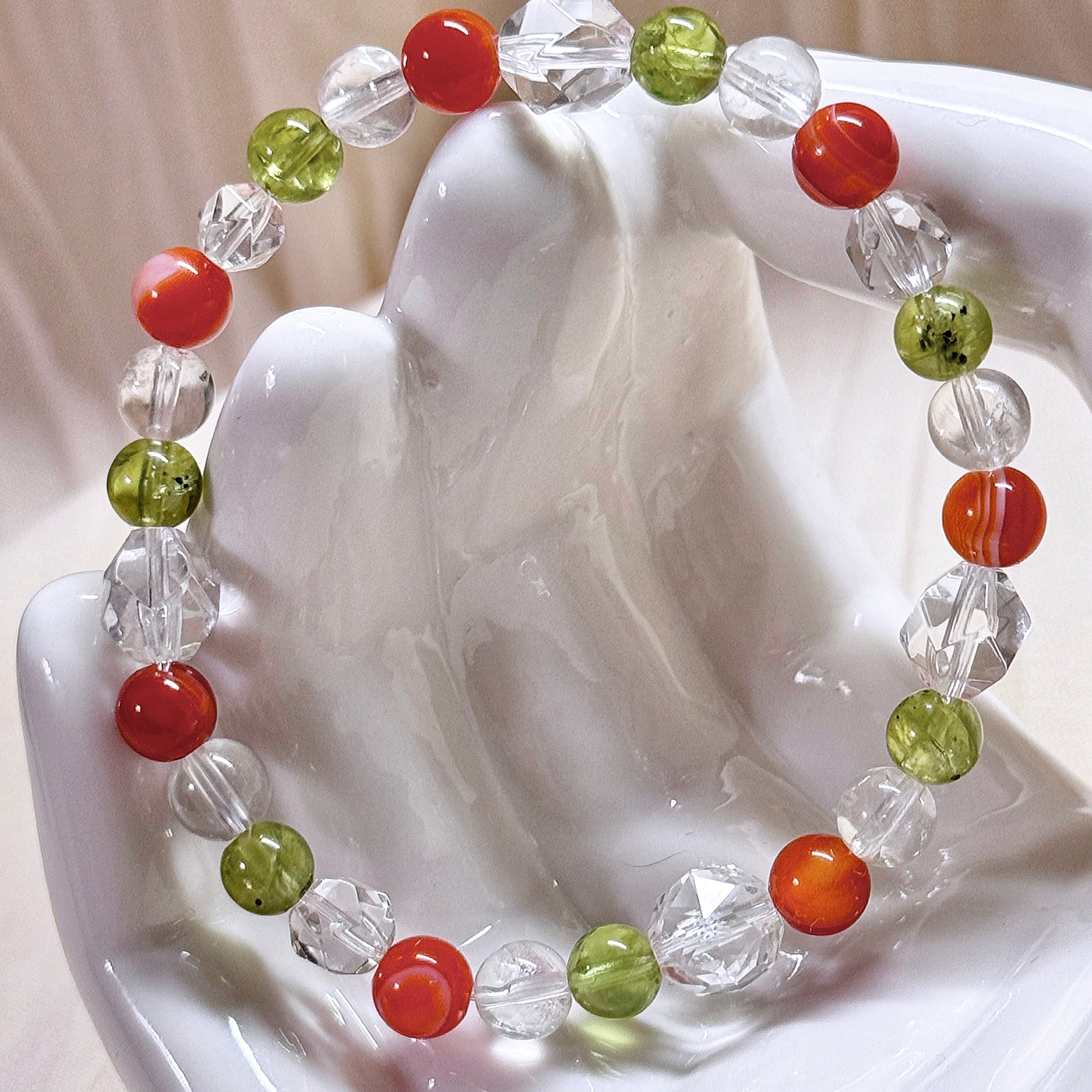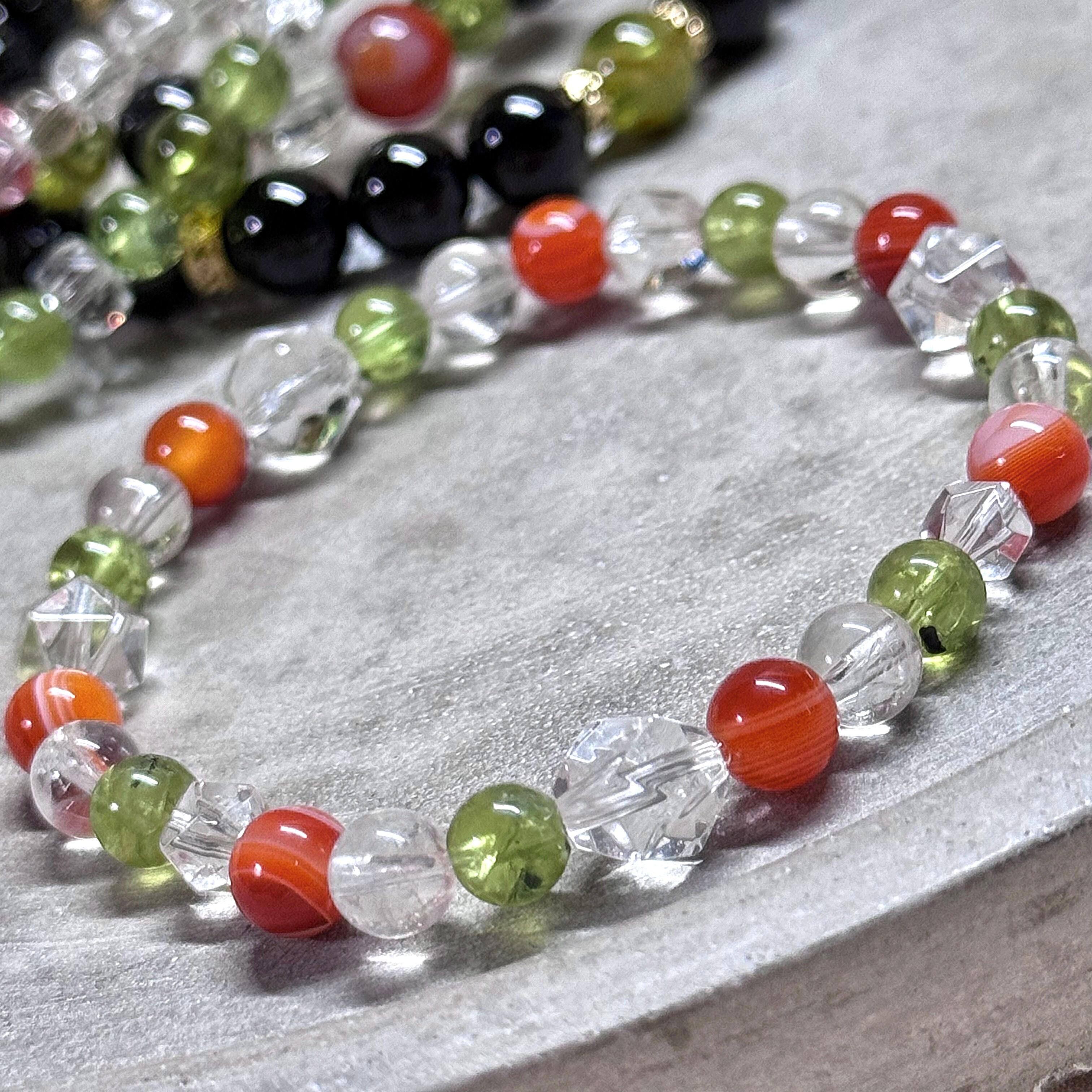 8月の誕生石にぴったりなペリドット、サードオニキス、そして水晶を使用したジュエリー。