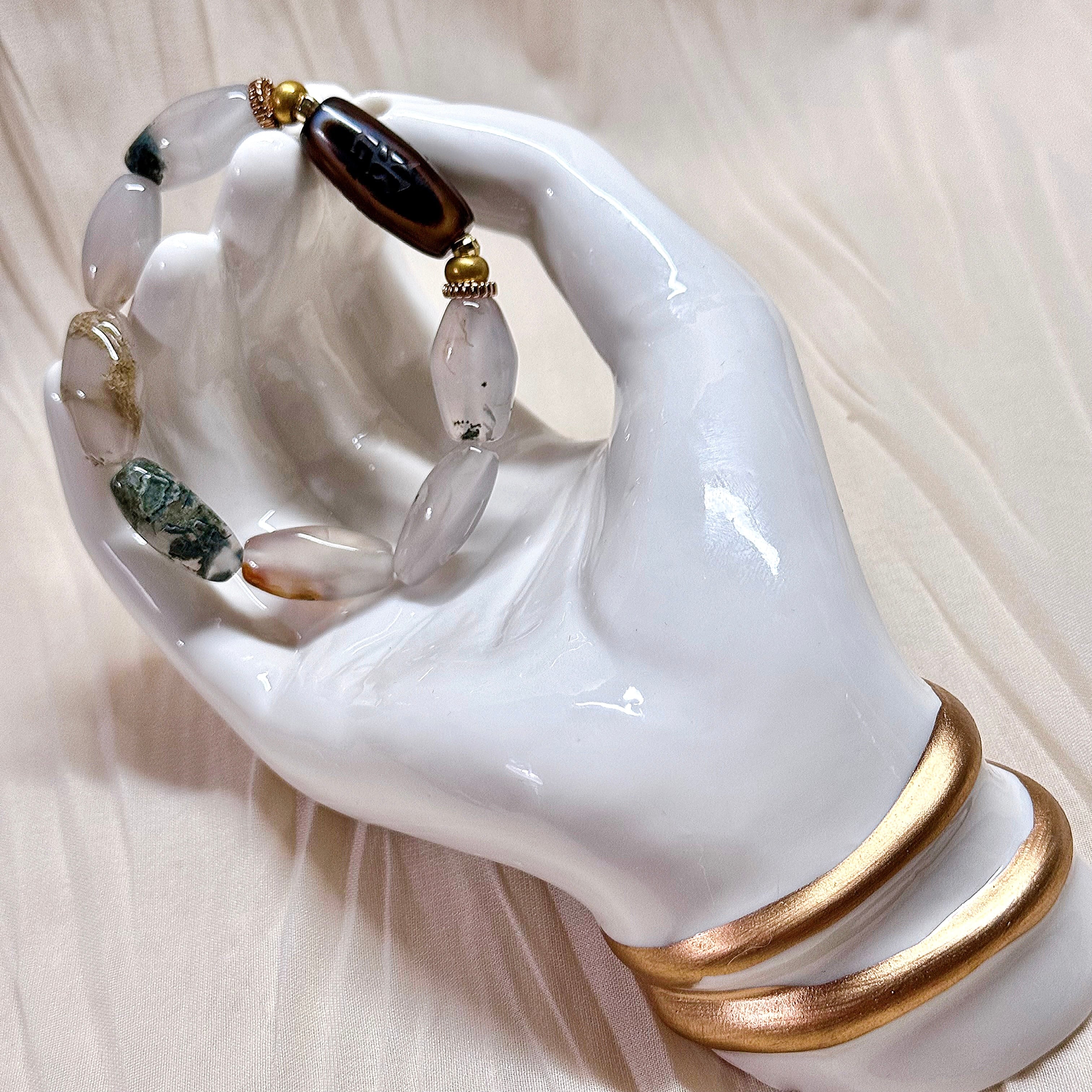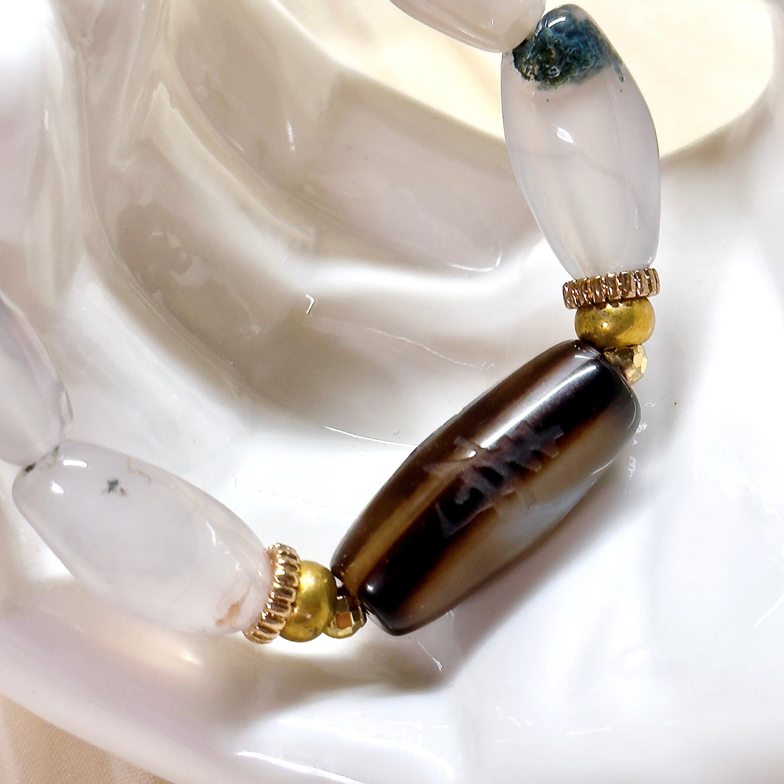 【繁栄、財運、健康】福禄寿 天珠 海瑪瑙 パワーストーンブレスレット 天然石アクセサリー