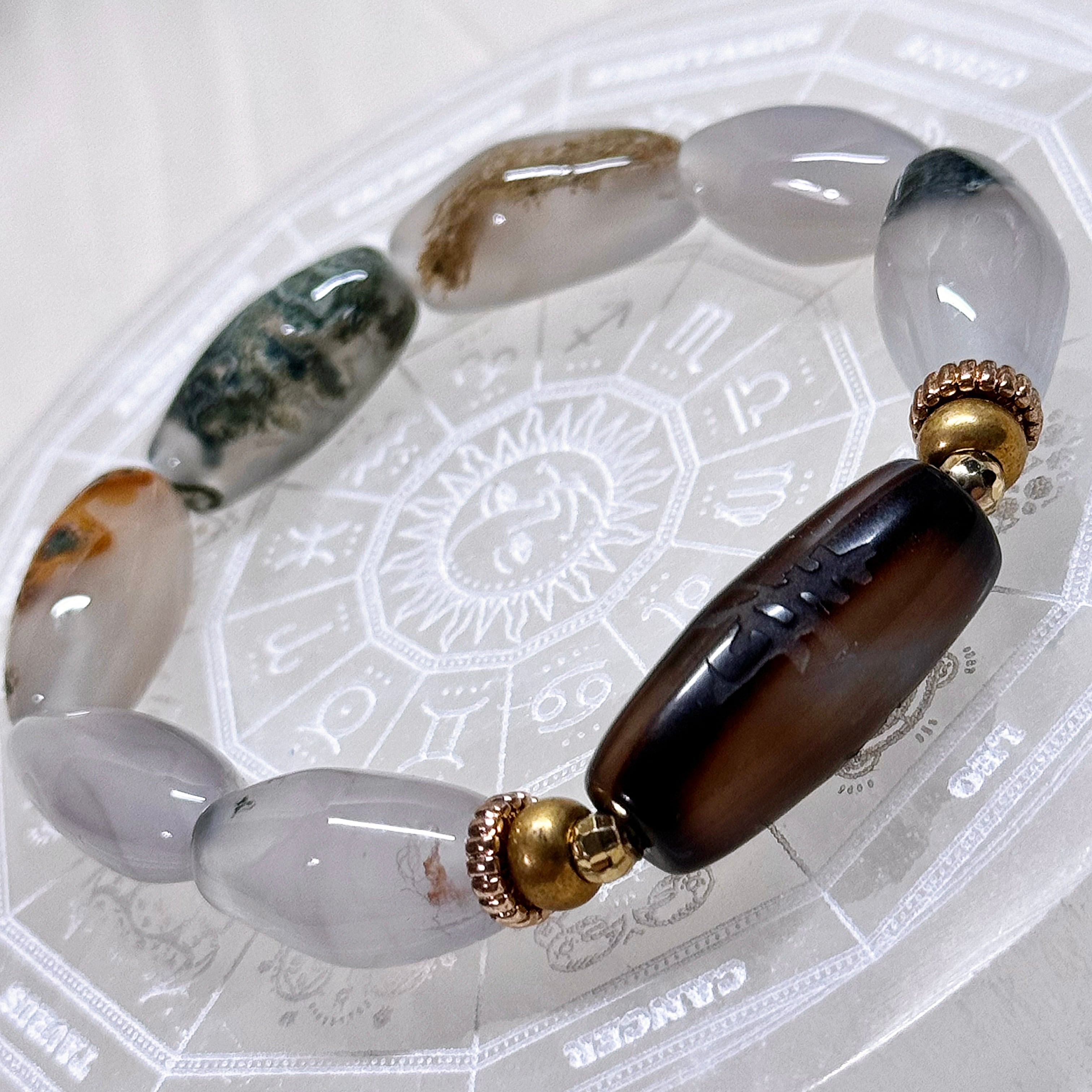 海瑪瑙と福禄寿の文字が彫られた天珠のブレスレット