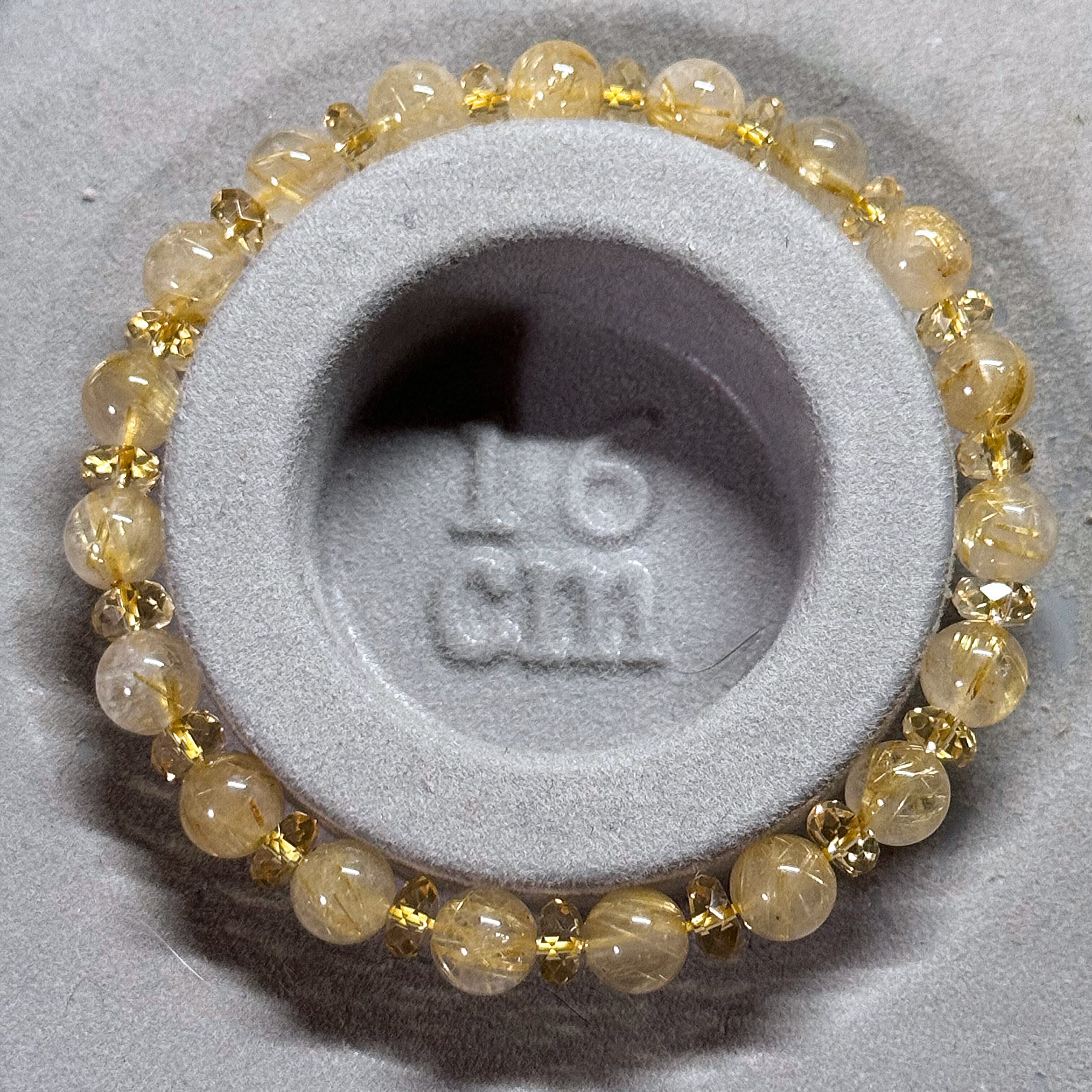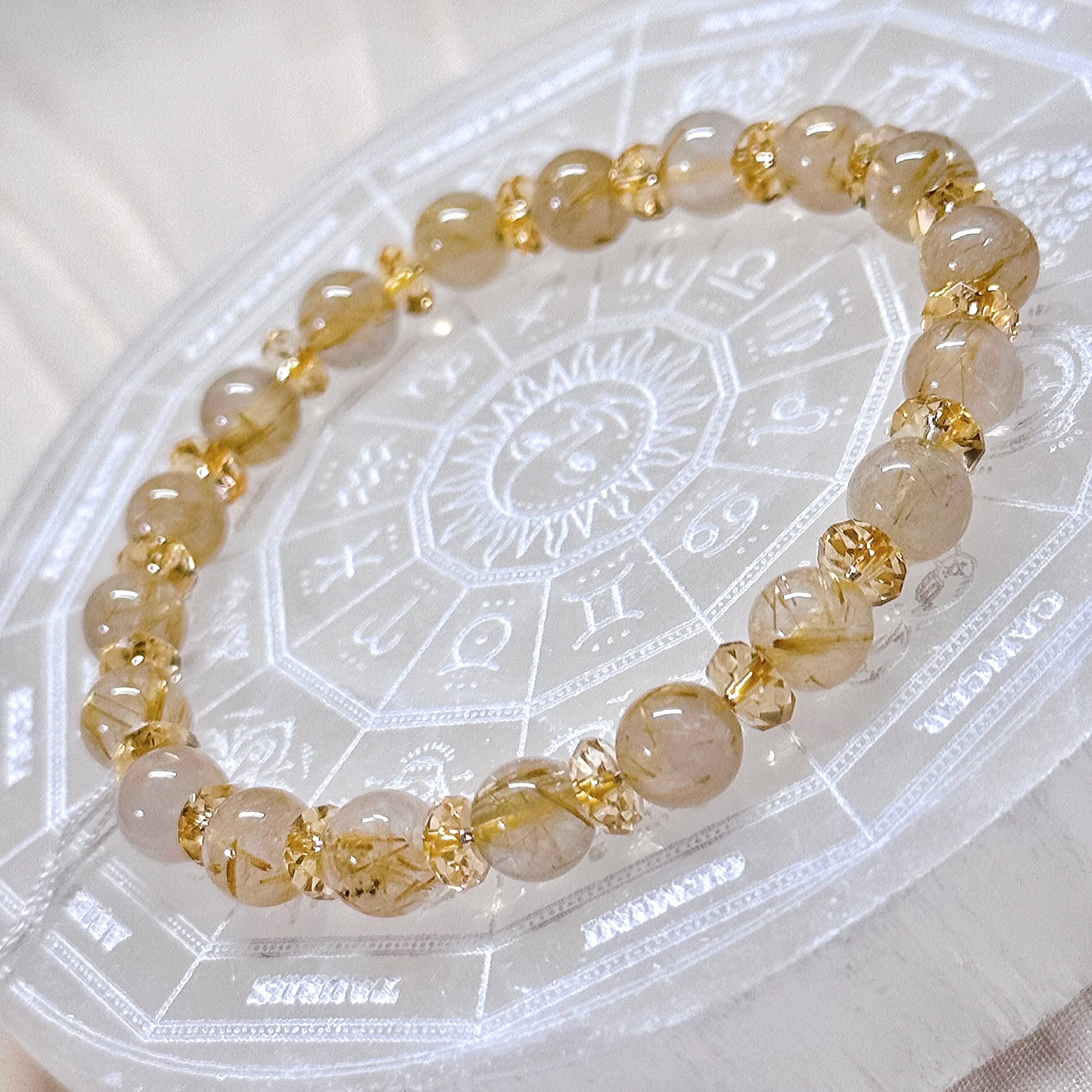 金運に最も良いとされるゴールデンルチルクォーツに商売繁盛、エネルギーの活性化に効果のあるシトリンのボタンカットを合わせたキラキラブレスレット