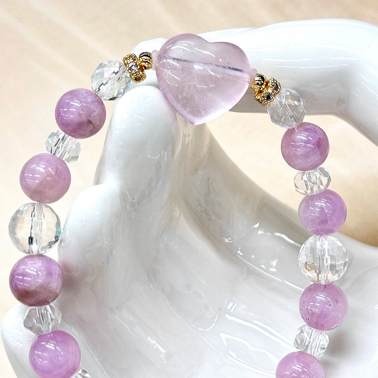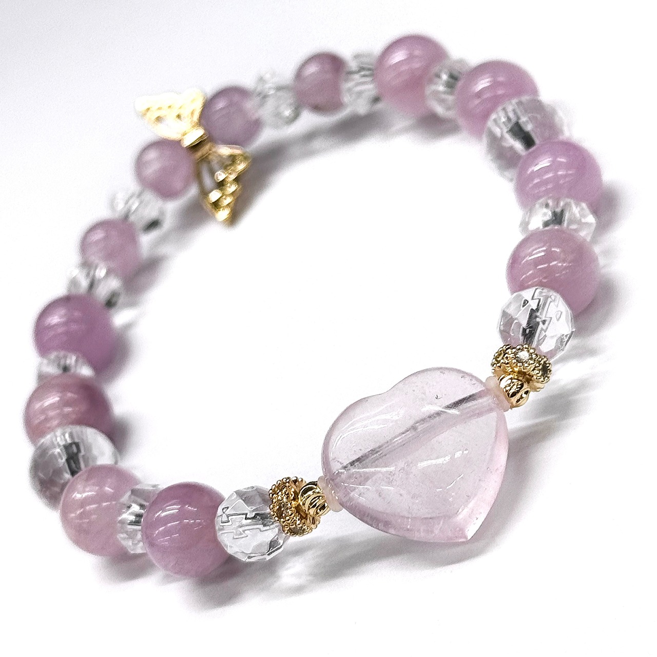 ハートのモルガナイトをトップにしたクンツァイトのデザインブレスレット