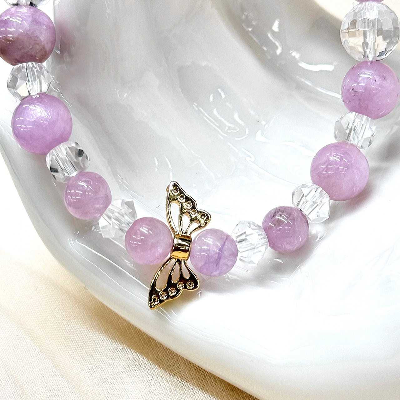 【詠月】9月 クンツァイト モルガナイト ハート 蝶 パワーストーンブレスレット 天然石アクセサリー 誕生石