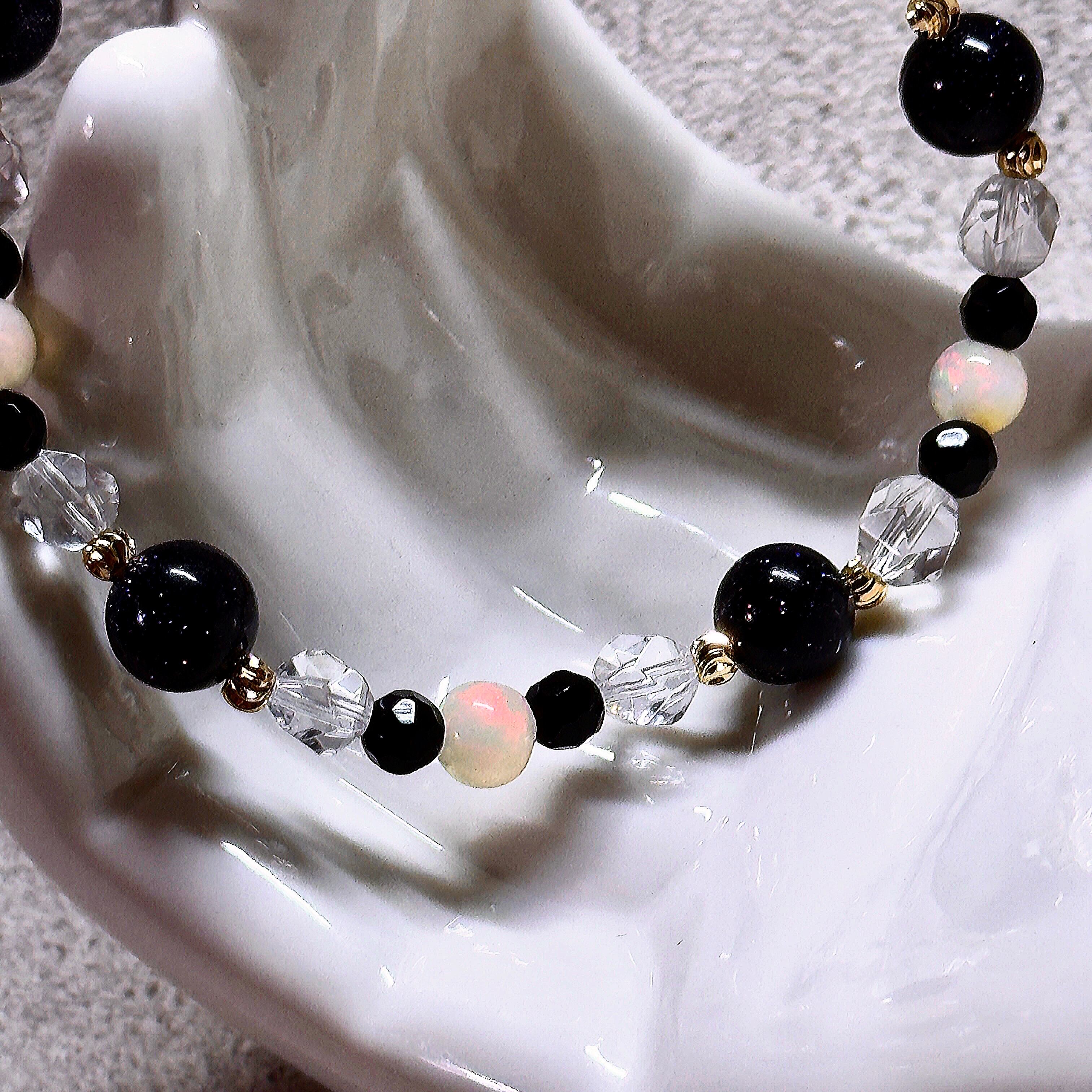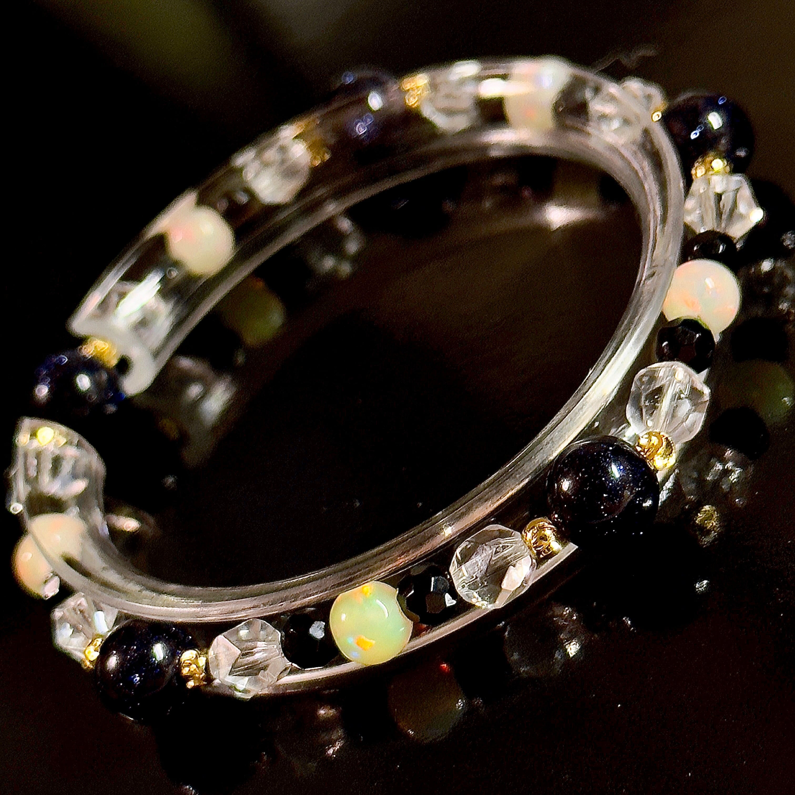 ブルーゴールドストーンは、星空のように輝く深い青色で、精神的な平穏をもたらし、自己信頼を高める力を持っています。